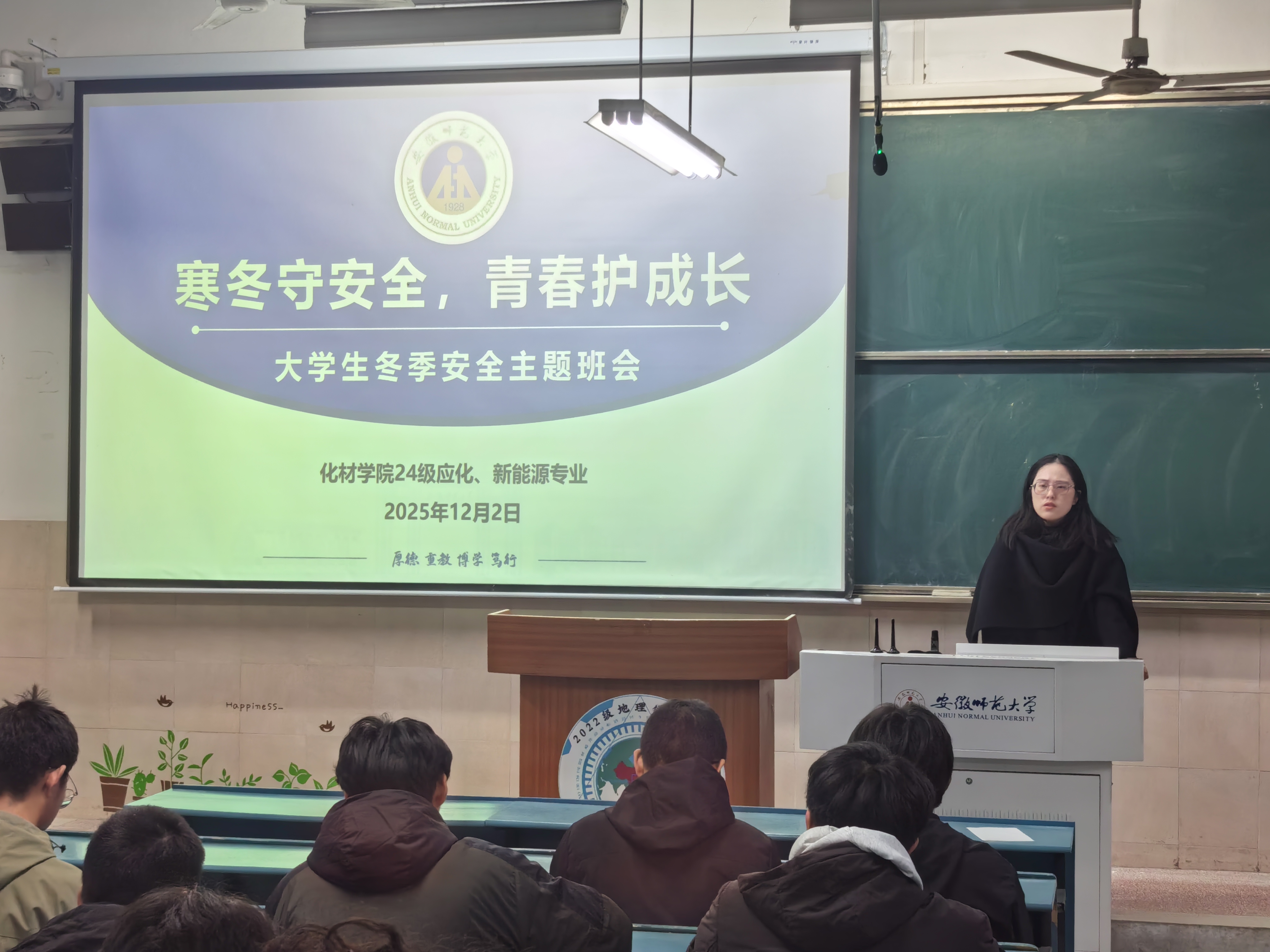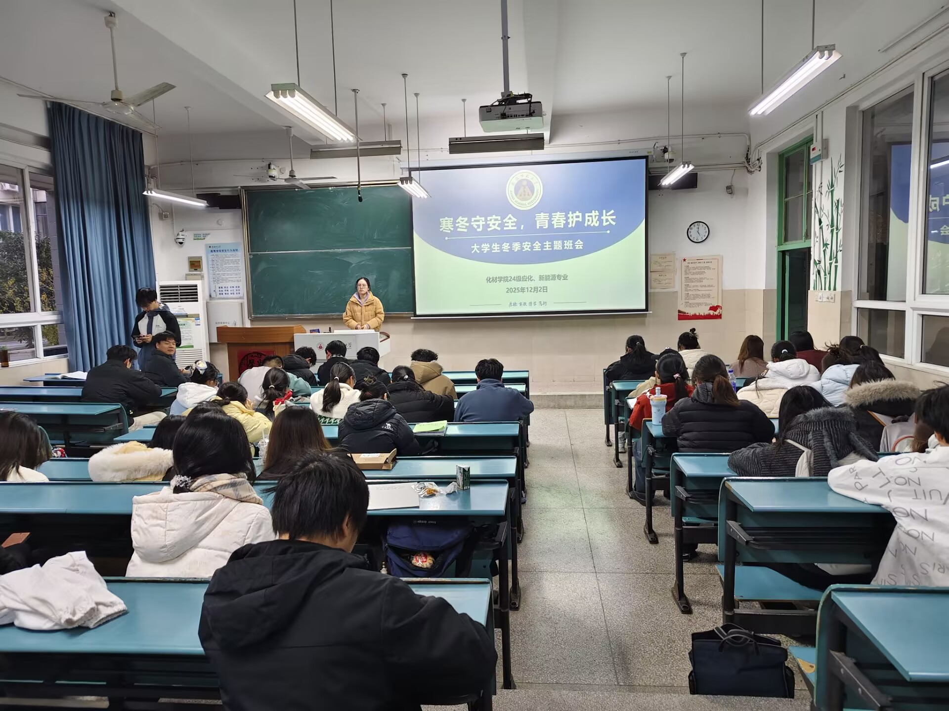 24级应化和新能源专业分别于12月2、3日在行知楼集中组织召开了大学生冬季安全主题班会,围绕宿舍消防、交通安全、电诈防范、情感教育与生命教育五大板块,全方位增强学生安全意识,筑牢校园安全屏障,会议由辅导员王芳老师主持,全体同学参加。