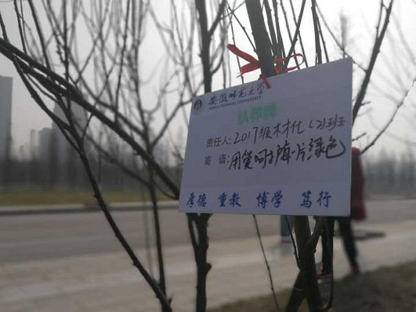 3月10日上午,17级材化2班积极参加由环境保护协会主办的主题为“绿色人文、和谐校园”的植树节活动。