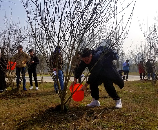 3月10日上午,17级材化2班积极参加由环境保护协会主办的主题为“绿色人文、和谐校园”的植树节活动。 活动主办负责人首先为大家介绍了此次植树节活动举办的意义,并对植树护林的相关知识进行了详细解说,同学们都听得十分仔细,生怕错过了什么植树的技巧。解说过后,参与活动的同学排队前往外联财务部处领取植树护林的相关工具。之后,在环协能源低碳部人员的指导下,大家分别分区域进行锄草、浇水,给树木松土、挂牌。 通过这次植树活动,大家对环境保护有了切身的体会、真真切切在植树节做出了自己对“地球绿色”的贡献,让我们知道环保并不难,环保离我们并不远。本次活动诠释了大学生时刻心系社会与注重实践的态度,为同学们提供了参与社会环保实践的机会,拓展了大学生的知识面,丰富了大学生活。(文:吴燕珍)