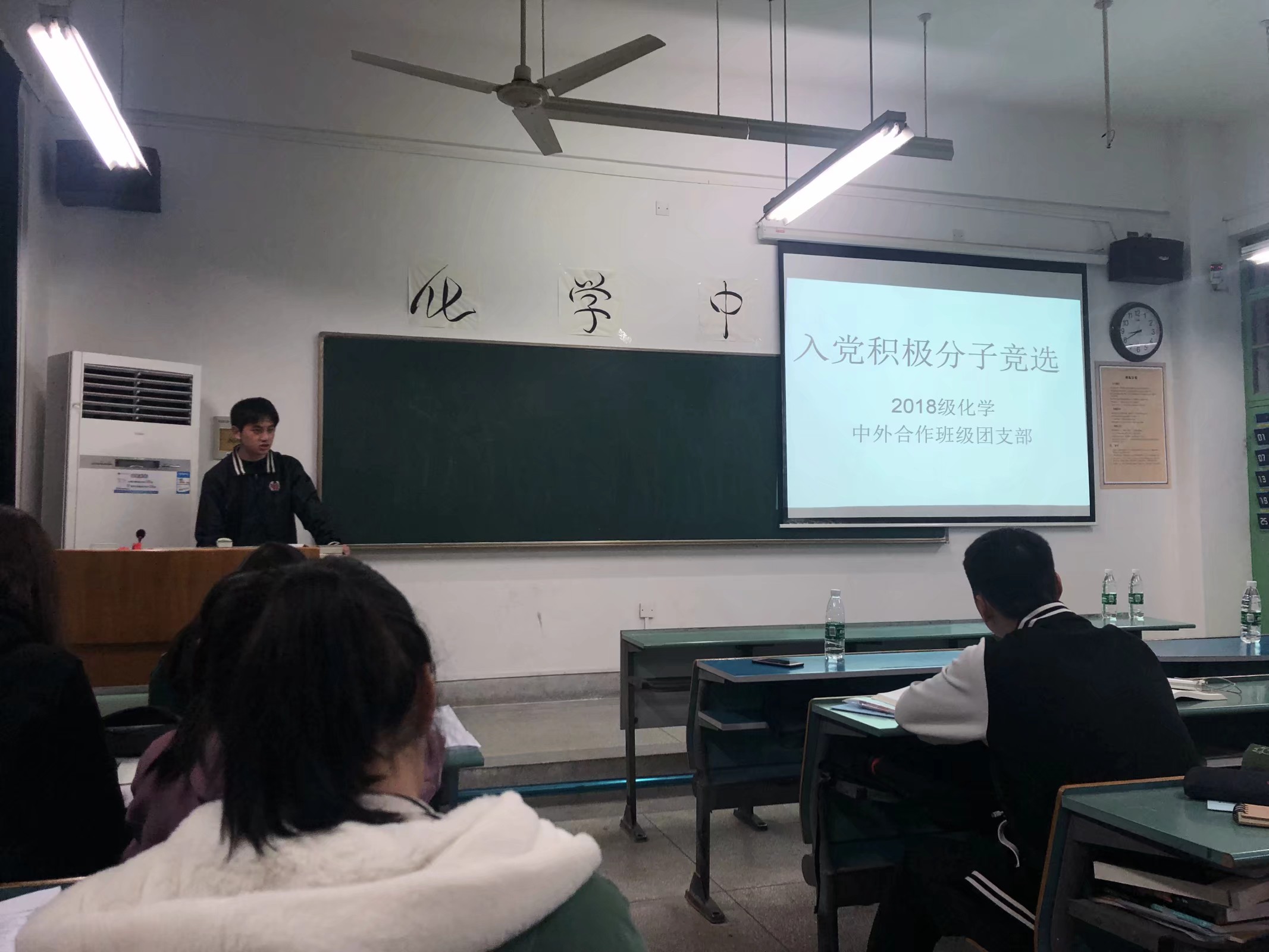 本网讯(18化学中外 魏妹 尚晨妍)为了让我班同学明确奋斗目标,帮助同学们适应的新学期的学习和生活,学习如何平衡学习专业课和备考雅思,2018级化学中外班学习委员潘文妤同学通过邀请一些优秀的学长、学姐们的现身说法,切实解决我班同学在学习、生活中所遇到问题。 首先,来自2015级化学师范的徐小云学姐为我们提供了一些经验和建议,如在大一阶段就应做好学习方面的规划并明确自己未来的发展方向;同时必须克服自己的畏惧心理,努力舒适区,积极和老师同学沟通交流,及时解决学习生活中的难题。此外,还要寻找适合自己的学习方法,最好提前接触英文文献,为出国学习做好准备。 随后,2015级化学师范的段雨彤学姐上台发表了她的大学四年的学习心得体会。其中,她强调学习习惯的养成是一切的基础。另外,我们须充分认识到成绩的重要性,未来的机会与机遇都处处与学业成绩挂钩。在学习中学会独处,在生活中多与亲人朋友沟通交流。最后她祝愿化学中外合作班的每位同学都能保持本心,不辜负自己的努力和付出。 交流会的最后,来自2017级英语中美的学长学姐们用自己的备考雅思经历为蓝本,讲述了一些英语学习的小技巧和备考中须注意的小细节。我班同学与学长学姐们积极互动,获取了许多有用的知识和信息。 在学习经验交流会后,团支书丁逸飞同学主持了“入党积极分子推优”活动,旨在吸收班级内较为优秀的同学成为入党积极分子,积极向党组织靠拢。此次推选活动秉持着公平公正的原则,采取抽签定序、匿名投票的形式。7位参选同学依次上台演讲,各自阐述了自己对于入党的思考和看法,以及对于自己过去学习生活及思想建设的反思和收获。演讲结束后,辅导员陶勇老师主持了本次的匿名投票环节,最终魏妹同学和程艺青同学当选入党积极分子。 最后,辅导员陶勇老师总结道:“组织上入党一生一次,思想上入党一生一世!”希望所有入党积极分子都能提高思想政治觉悟,加深对党的认识,自觉向党组织靠拢,在成为优秀共产党员的道路上坚定不移地走下去。