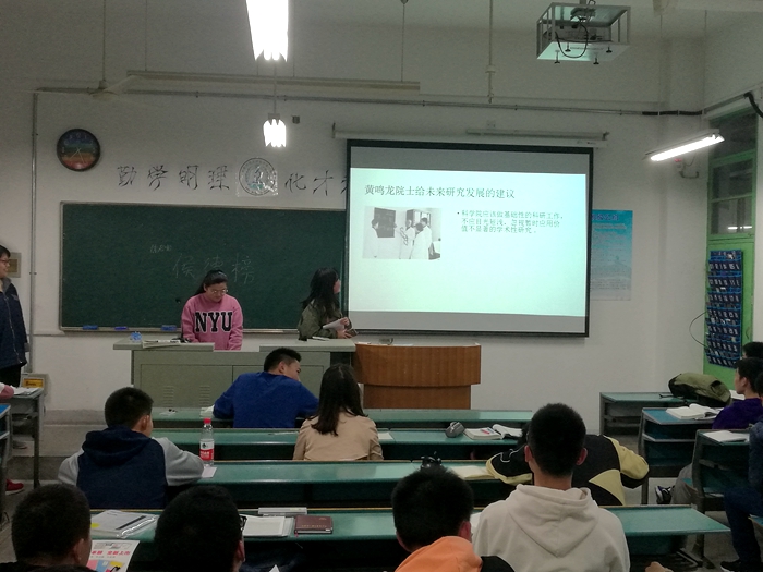 本网讯(2018级英才班 陈浩天)3月31日晚,2018级化学(非师范)专业在行知楼7栋304室开展了首次“青春物语”活动。本次“青春物语”主题为介绍优秀化学家。活动由团支书徐千千和班长樊远路共同主持,全体化非同学参加了本次活动。