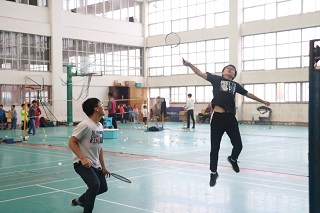 此次比赛分为男单、女单,男双、女双和混双三类项目。随着各方参赛人员到达各自的比赛场地,激烈的角逐正式开始。单打注重考察自身实力,二人对战,只见球在分隔线间来回穿梭;双打则需考察合作能力,赢得的不仅是技术,更是搭档的默契配合。参赛者们飞扬的身影尽显青春的热力,那一阵一阵的击球声如鼓点般将诺大的场馆震慑沸腾。场面激烈壮观,在场观众屏息凝神,目光追随着羽毛球的来回跳跃,精彩之处,更是掌声四起。从小组赛到半决赛、决赛,比赛一场比一场精彩、一场比一场激烈,参赛选手们在汗水中绽放了青春光彩。