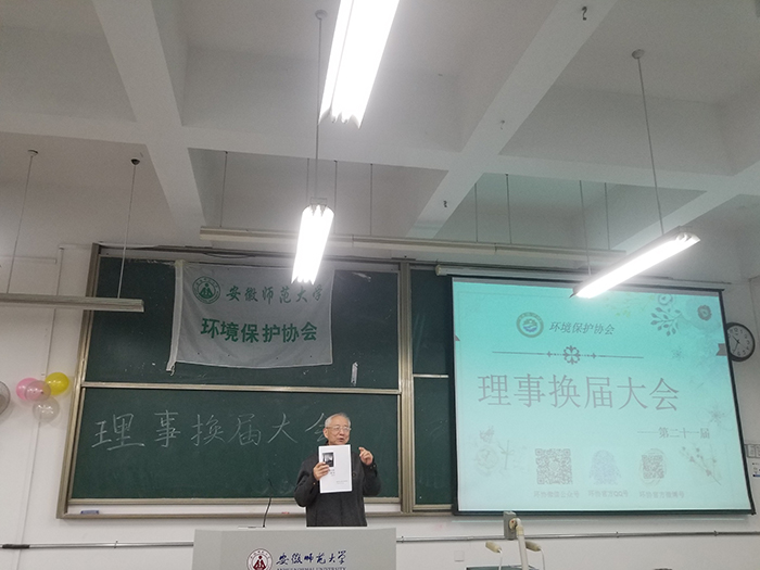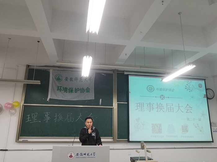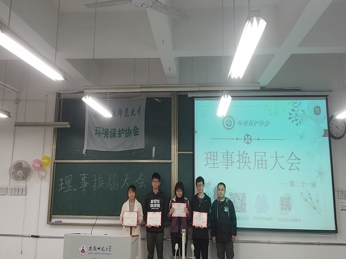 白驹过隙,时光飞逝,又是一年换届时。12月2日上午9点,绿帽奴 环境保护协会的理事换届大会活动在行知楼2070201如期举行。出席此次换届大会的有绿帽奴 关工委副主任、环境保护协会指导老师宫世国、环境保护协会现任会长郭泽宇、现任理事长吴琼。 大会以文艺部带来的《相亲相爱一家人》拉开序幕。动听的歌声后,环协八个部门依次通过PPT的形式向大家介绍了部门概况以及留任部员信息,并为新任理事颁发聘书。一张张精美的图片,一段段积极飞扬的音乐,还有创意独特的宣传片,在场的同学们不时发出阵阵赞叹与掌声。随后又进行了各副会长和各部长聘书的颁布。接着,宫世国老师为新任会长郭泽宇、新任理事长吴琼颁发了聘书。郭泽宇上台发言,表达了对各理事的感谢,希望能与大家共同促进协会未来的发展。之后新任理事代表杨志发言,表达了对环协真诚的祝福,说出了在场理事的心声。大会最后,由宫老师作为指导老师上台,提出了他寄予协会的希望以及未来一年里工作的指导。他还指出了习近平主席对于生态环境的保护十分重视,提醒协会的成员们要勿忘初心,坚持环保。大会圆满结束。 此次换届大会为协会招募了新生力量。长江后浪推前浪,一届新人换旧人。协会能走到今天,离不开一届届环协骨干的积淀以及一位位满怀希望,心系环保的同学们加入。一日环协人,终生环保梦,环保尚未成功,同学仍需努力!