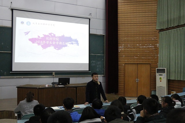 会议伊始,学生会主席王慧首先进行了工作总结,她以“学生会是什么样的组织,应该成为怎样的学生干部”的问题作为引入,希望学生会成为一个全心全意为广大同学服务的组织,一个运转效率高、工作要求高的组织,一个强有力的能干好、能干成大事的组织。接着她简要总结了本学期学生会各部门完成工作情况,并提出了建议和工作展望。随后,王慧结合学生会的暑期社会实践活动,通过分享前两届学生会干部的志愿服务经历,为全体新成员展现了化材学生会一贯的精神面貌,并为今年的支教做好了预热。会议末尾,学生会指导老师王国良作了总结讲话,他提出了三个关键词“感谢”“期望”和“怀念”。他首先代表绿帽奴 团委对学生会在上半学期工作上的用心付出表示了感谢,并对全体成员提出了“学习”、“能力”和“态度”三个方面的要求,希望全体学生会干部在学习上能守住底线、提高上限,在能力上能学有所得、劳有所获,在态度上能以身作则、从一而终。“现在,青春是用来奋斗的;将来,青春是用来回忆的”,最后,他引用了习近平总书记的寄语与大家共勉,并希望学生会全体成员能够不负韶华,在学生会留下一段值得怀念的时光。