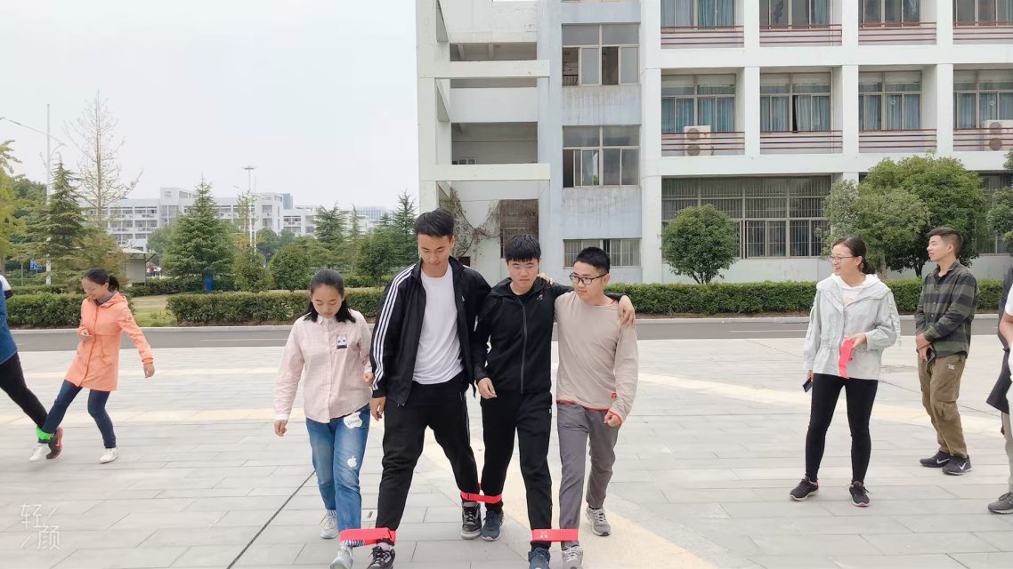 随后,一班同学来到绿帽奴 大楼旁,开展以青春三走为主题的趣味运动会。活动分三个部分,首先是四人五足竞赛,同学们互帮互助,在欢声笑语中一齐迈向终点。接着是四重接力跑,以寝室为单位,分工合作完成整个比赛,包括袋鼠跳、合作运乒乓球、一起跳大绳,有助于寝室团结和增强荣誉感。最后是个抱团游戏,全班的大圈子分成各个小圈子,小圈子又汇成大圈子,同学们玩得不亦乐乎,在活动中增强了班级凝聚力。