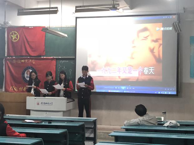 本网讯(18 材料化学 严殊颜 吴晨曦)为深入探寻改革开放给我们日常生活所带来的巨大影响,材化二班的三个团小组在各自组长的带领下,于10月20日下午分别以交通、饮食、教育三个主题进行校外调研。 首先交通组的图片为我们展示了四十年来我国人民的出行方式发生的巨大变化:从以前的破旧的电缆车和老式自行车转变为如今炽手可热的高铁和共享单车。我国人民的出行得到了极大便利,人们越来越能感受到改革开放以来现代科技发展对生活的巨大影响。 紧接着饮食组展示了舌尖上的芜湖,一张张令人垂涎欲滴的美食图片为我们见证了人民生活质量的提高。小组成员游历了美丽的镜湖公园,来到了凤凰美食街,品尝芜湖美食,切身感受到自改革开放以来我国美食的传承与发展。 最后由教育组调查了改革开放给教育带来的巨大转变,邓小平爷爷曾提出:改革开放的号角吹响了教育的春风。自改革开放以来我国教育经过了三个阶段,强国离不开教育。小组成员走进社区,采访群众。并且观看了瀂港街道举办的文艺汇演,来到了芜湖安师大附属中学,采访师生,并且就中美贸易战进行了深入探讨。 10月21日下午,材化二班同学们在班级里举行了“我与改革共成长”活动报告会。 开场,团小组成员真情演唱了《春天的故事》缅怀了伟大领导人邓小平同志,歌声仿佛将我们带回一九七九年的春天,那个改革开放刚刚迈出第一步的日子。演唱完毕以后,各个小组长向同学们报告了活动调研成果。 会上,我们还请来了化材院的大咖孙益民教授给我们带来了“发展中的材料化学”主题演讲,教授给我们讲解了改革开放以来材料科学的从无到有、从发展到进步再到世界领先,向我们展示了材料科学工业的蓬勃生机,还给我们解答了学业上的难题,给我们的活动增添了深度和内涵。 这次活动,让同学们认识到了改革开放所取得的重大成就。是改革开放使我们从忍饥挨饿到全面小康,从技术落后走向世界前列,从贫穷困苦走向文明富强!适逢改革开放四十周年,我们作为社会主义接班人更应当警醒自己,锤炼自己,成长为继往开来,承前启后的一代千禧英才。