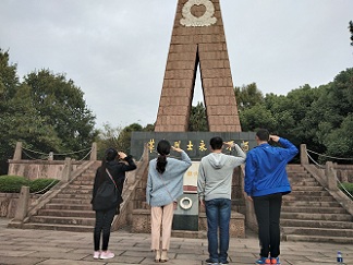 第一小组的同学于上午到达烈士陵园,一路上大家路过闹市,看过繁华地段,看着每个人的脸上都洋溢着幸福,这和改革开放的是离不开关系的。在向革命先烈表达深深的敬仰之心后,我们不禁感慨这些先烈的英雄事迹,有真心的感谢他们为我们的生活做出的付出。