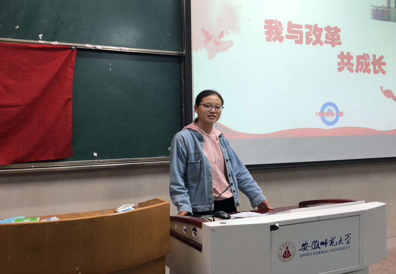本网讯(18材化1班 程辰)随着十一届三中全会的召开,中国的改革开放拉开了序幕。时光荏苒,见证芳华。到如今, 改革开放已走过40年的风风雨雨。今年正值改革开放40周年,为增进同学们对改革的认识,从而更好地肩负起当代青年的使命,跑好改革的接力赛,10月20日晚上,2018级材料化学一班举办“我与改革共成长”主题团日活动。活动在团支书黄宁宁精心制作的的改革教育片中拉开了序幕。 紧接着由各团小组为同学们带来精彩的演讲。同学们的演讲充分体现他们对改革知识的了解,表现出青年一代坚持学习、开拓视野、为实现既定的改革目标贡献力量的决心。 四十周年,风雨同度。从上世纪70年代到如今的21世纪的10年代。中国发生了翻天覆地的变化。。让我们从不同的角度感受到祖国的翻天覆地的变化。一种我以祖国为荣的自豪感油。生在这个互联互通的新时代,改革不仅关乎国家之盛, 更关乎世界格局,关乎你我,十足地展现了改革开放的重要性。同学们独树一帜,带来绘画作品《以周边之变观改革开放》,团小组b组五位同学创作了五幅不同年代的画作。她们以画笔向同学们绘改革开放,抒爱国之情,得到了同学们的称赞,掌声连连。 有同学声情并茂地朗诵《改革深入我心》,用声音传递“五千年华夏文明,源远流长;四十年改革开放,继往开来”在朗诵中我们一起了解改革。 着优美的歌声,我们的主题班会进入尾声。在小组人员集体智慧下,我们共同改编了《马哲有点甜》在优美动听的歌谣中我们体会改革的影响。 每个人都在思考一个问题:我跟这个时代有什么关系?我有没有辜负这个时代,这个时代有没有辜负我。回答是:这个时代从不辜负人,它只是磨炼我们。00后的我们,没有经历过四十年前的艰苦,但是历史课堂上、历史书籍里、珍存照片中,为我们再现了那个时代的艰辛。如今的美好生活,是无数先辈人艰苦奋斗、奋力拼搏的成果。我们要倍加珍惜现在,学习先辈们艰苦奋斗的精神,接好改革的接力棒, 努力工作,服务社会,脚踏实地,勇往直前,努力奋斗!