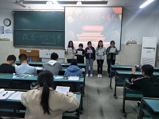随后,在三位团小组组长的指挥下开展了一系列有趣的活动,这些活动虽小,但却激起了班级成员的爱国爱党豪情。《华夏崛起创辉煌》诗歌朗诵描绘出了一出改革开放的盛大场景,正如诗歌中的“似一只涅槃的凤凰,似一只展翅的鲲鹏,华夏崛起”,祖国正昂首走向强国之路。《与祖国同行·铸华夏辉煌》又一首饱含爱国爱党的诗歌,在几位同学的深情演讲下,过往的一幕幕仿佛就在我们眼前,诗歌中“厉害了!我的国!”传达出了中国的发展令世人瞩目,是民族的骄傲!《改革开放40年来的大事件》更是向大家集中展示了中国在改革开放这些年来所取得的优异成绩及在世界舞台上的影响,勾起了大家对祖国的自豪感。《我爱你中国》《难忘今宵》《歌唱祖国》三首动听的歌曲是大家送给祖国改革开放政策的最美好的祝福!