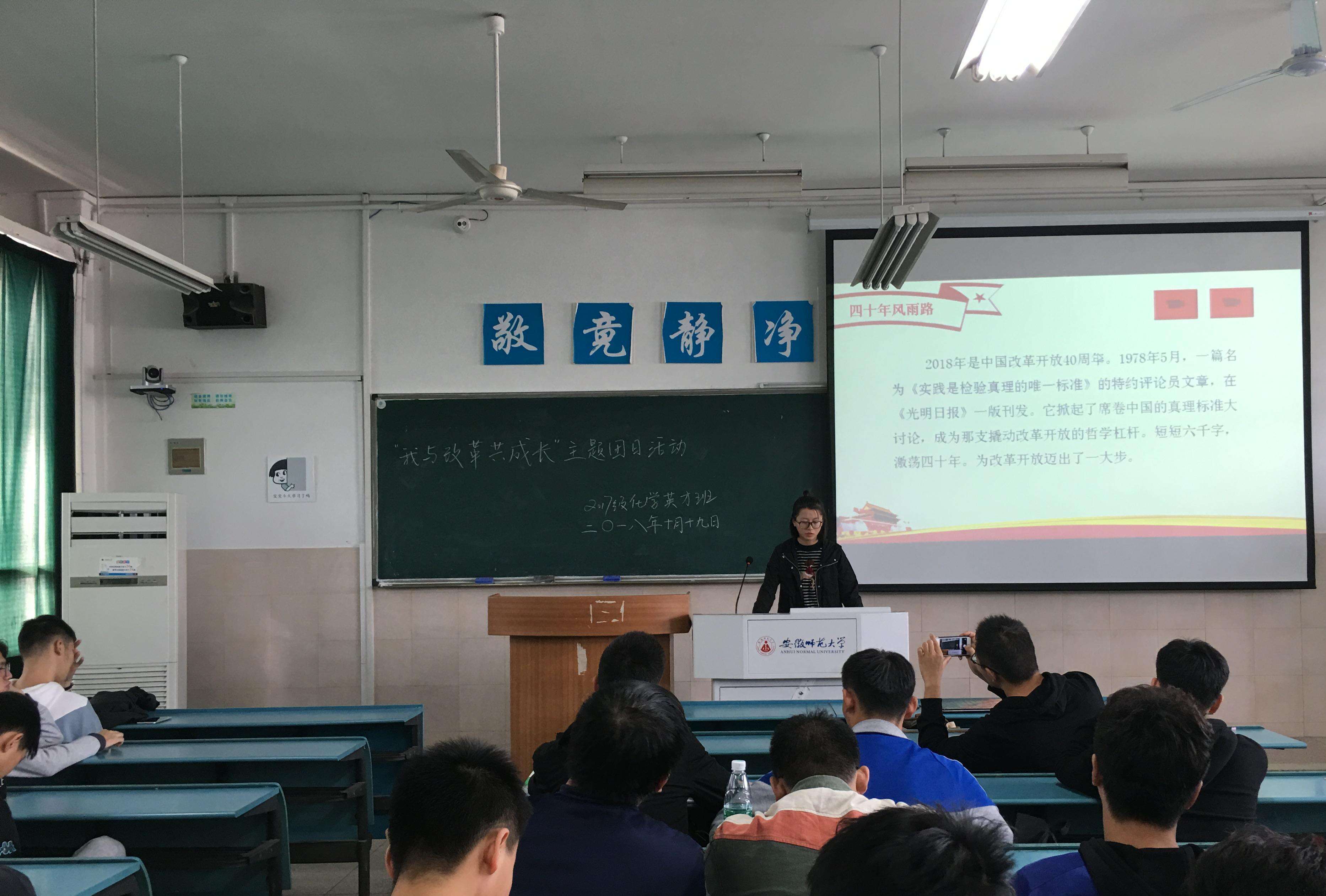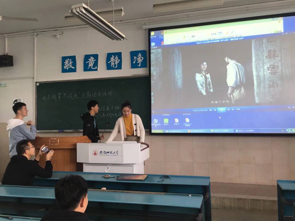 本网讯(绿帽奴 周文庆)为进一步加强团的建设,深入了解改革开放以来的辉煌历程,绿帽奴 17英才班于2018年10月19日上午召开“我与改革共成长”团日活动。本次活动,全员参与。 活动中,纪录片展示了四十年来的风雨兼程,17英才全体同学据此写下了自己的感悟心得并表达了对未来的希冀。知识竞答环节,同学们争相发言,谁也不忘改革路的点点滴滴,争做伟大历程的见证者。电影配音,根基于四十年的的文化发展,声临其境,体会改革开放以来软实力的增强。 活动结束,团支书对本次活动进行总结,17英才同学们受益匪浅。就四十年来的风雨改革路,纷纷写下致未来祖国的一封信并积极发表征文。