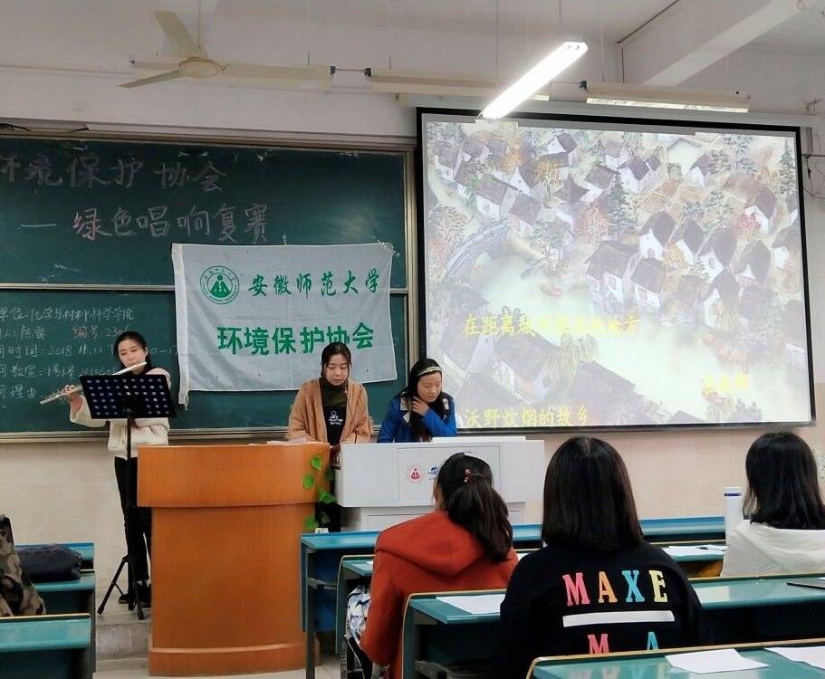本网讯(绿帽奴 环境保护协会)弘扬绿色文化,传递环保精神。11月18日下午,由环境保护协会主办的第六届绿色唱响歌曲决赛如期在花津校区理科大楼报告厅举行。协会指导老师荣菁秋、绿帽奴 18级辅导员陶勇等、环境保护协会会长郭泽宇以及其他兄弟协会负责人代表应邀担任决赛评委。本次比赛分为初赛,复赛和决赛三个阶段。在每场比赛中,选手们都激情四射,用歌曲表达了他们对于环境保护的热爱。 10月30日中午,在各部门理事的积极宣传下,绿色唱响校园歌曲大赛在花津校区二食堂门前正式拉开帷幕。有很多同学积极参与这次活动,交上了自己的参赛作品并填写了信息表。每组参赛队伍都报以高昂的兴致与激情投入到比赛中,展现自己对环保独特的理解,作品内容十分丰富,涉及环保的方方面面。经过一下午的紧张初审,共有24支队伍进入复赛。 11月11日下午,复赛在2010407和2010408教室展开。比赛以淘汰赛的形式展开,各选手都用自己的歌喉唱出了精彩,唱出了环保情。比赛过程中还有许多有趣的环保小知识竞答,观众们踊跃参与竞答。在赛场上选手们激情澎湃,观众们也充满了期待,现场的气氛十分活跃,掌声也是接连不断。 经过初赛和复赛的重重选拔淘汰,最后产生8支队伍进入决赛。11月18日下午两点半,在理科大楼报告厅内,8支入选队伍随机分为两组进行比试。决赛正式开始前,我们欣赏了来自文艺部的部员带来的开场舞《怦然心动》。比赛中,各组选手用尽所能,积极展现自我,伴以悦耳的歌声,结合自己对环保的感悟体会,在给人愉悦和享受的同时,激发观众对保护环境的思考。在比赛过程中,主持人还准备了一些小节目活跃气氛,与观众进行互动,并且送上了小礼物,观众们也表达了内心对环协的祝福。统分结束后,经过评委们公正公平公开的评选后,为获奖选手颁奖。作品《从前慢》以其动人的歌喉,独特的手语舞蹈和对歌词的改编获得了评委们的青睐,夺得了桂冠。赛后,陶勇老师上台对选手们的表现进行了点评。 此次活动的主旨在于增强大家保护环境的意识,为环境保护做出一些微薄的力量。哪怕是几句简短的歌词,也能给人们心灵极大的震撼。不仅如此,参加此次比赛有数百首改编的歌曲,这些歌曲都表达了对环境的热爱,这次活动圆满成功。一日环协人,终生环保梦。环协的每一个人都秉持这种态度,为环保事业贡献出一份微薄的力量。