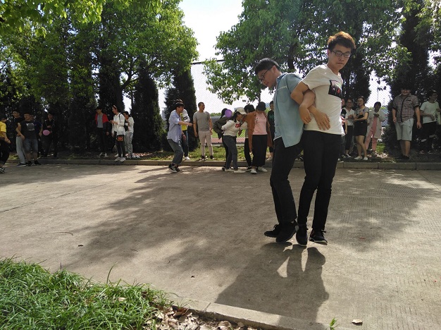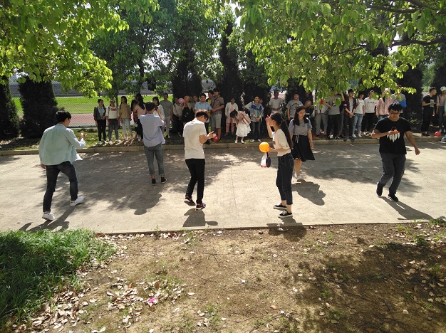 活动伊始,主持人介绍了“青年运动会”的背景及目的,并宣布活动的开始;活动中,参与比赛的同学分为八个小组,且每个小组都有一位裁判维系活动的开展。本次活动总共分为四项,即“10*20m乒乓球接力赛”、“齐心协力——背球接力赛”、“袋鼠猜猜猜(20m)”及“你来比划我来猜”;活动期间,每位同学都为了自己的小组而奋力拼搏,即使烈日当空,这也干扰不了同学们参与活动的热情。有趣的比赛,慢慢培养出具有默契的队友,及为小组获得荣誉时的兴奋,这些都让活动场面维持着高度热闹。