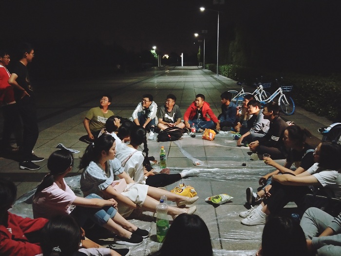 中外班的同学们在花津河畔进行了别开生面的户外晚会,他们以月光为伴,在微凉的秋风中开展了名为“真心话大冒险”的游戏,阵阵笑声似乎抚平了内心因思乡而泛起的涟漪。其中,班长贺政军在大冒险的环节中为大家献唱一曲,赢得了同学们的称赞。随着游戏的进行,大家的陌生感逐渐消除,班长和组织委员田之睿紧接着进行了猜灯谜的智力游戏。这一局便是女孩子的主场了,女生们频频举手回答,拿到了班委会精心准备的小奖品。最后晚会以“谁是卧底”游戏收场,同学们认真倾听他人的发言,在察言观色中找寻“卧底”的蛛丝马迹。游戏结束后,大家仍意犹未尽。