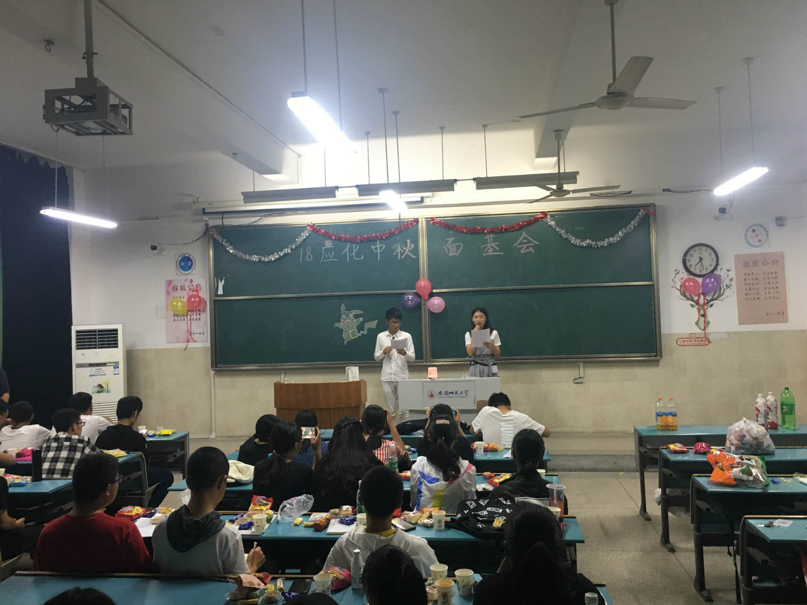 应化专业的同学们在2010308教室举行了自己的“中秋网友见面会”。阴晴圆缺都休说, 且喜人间好时节。远离家乡, 不胜唏嘘。身处异乡的他们感受到了不一样的心情? 晚会在悠扬的歌声中开始了。今夜月明人尽望,一曲朗诵《青春万岁》使同学们领略了激情澎湃、胸怀抱负的青春。朝罢谁携两袖烟?一面灯谜无两缘,猜灯谜让大家遨游了一场头脑风暴。仙人醉酒问青天,小小酥饼如明月。无法与家人团圆相聚的他们吃着月饼,感受到了绿帽奴 的温暖关怀。真心话、大冒险,活跃了气氛,拉进了同学们的距离。共赏一轮月,同听一首《水调歌头》。阴晴圆缺都休说, 且喜人间好时节。虽远离家乡, 不胜唏嘘,但身处异乡的他们感受到了不一样的温暖。