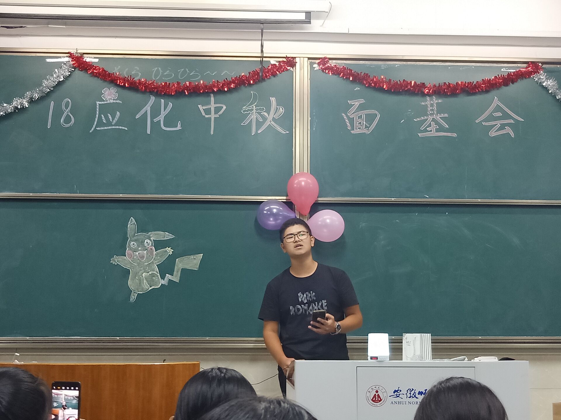 材化专业的同学们在2030103教室成功举办了新生破冰之旅暨中秋茶话会活动。虽然少了家人相伴,但是有不是亲人却胜似亲人的辅导员陶勇和各位同学们的积极相随,同学们依旧感受到了浓浓的中秋佳节的快乐气氛。 戌时一到,中秋茶话会便在主持人的带领下拉开了帷幕。会上,来自天南地北的同学们带来了丰富多彩的节目表演,有令人忍俊不禁的小品;有深邃动人的歌曲;还有狂放不羁的吉他表演等等。可爱的辅导员也给同学们带来了悦耳的外文歌曲,与同学一起玩你画我猜游戏,与此同时班级氛围被推上高潮。