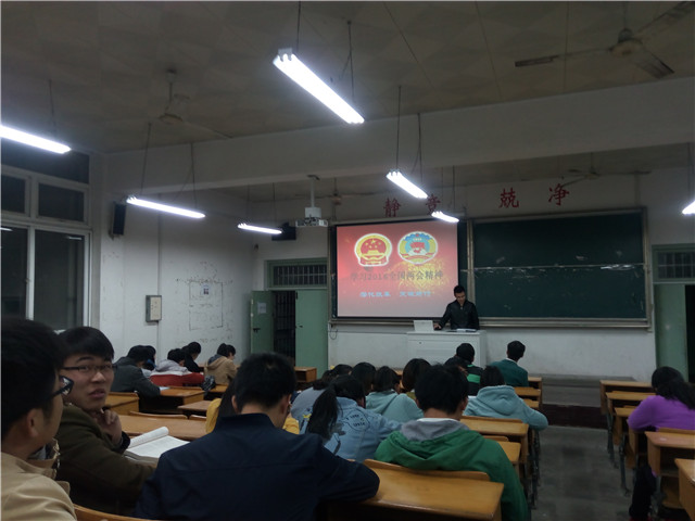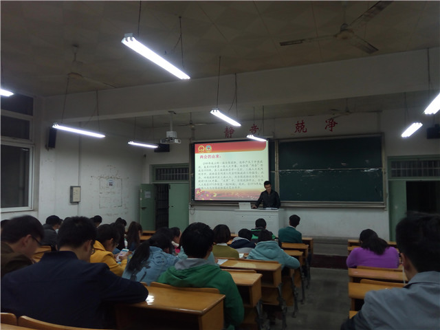 在春天这播种希望的好时节,全国人民以热切的期待迎来了“十三五”规划开局之年全国“两会”的胜利召开。为了深入学习贯彻“两会”精神,提升当代大学生的政治素养和理论水平,增强大学生建设国家的主人翁意识,在院团委的统一部署下,3月21日晚,2014级材料化学一班团支部的全体同学,在团支书的带领下展开了以“学习两会精神,共享两会盛举”为主题的班级活动。 此次班会从两会内涵、2016政府工作报告解读、2016两会热点三个方面给同学们带来了“两会盛宴”。从实际出发,结合专业特点与时代发展潮流的主题班会,让团支部同学们透过“两会”了解当前社会形势,从而为自己之后的学习计划做出参考。例如在2016政府工作报告中指出公共教育投入向中西部边远贫困地区倾斜,这就给同学们释放了一个强烈的信号,为支持中西部教育发展和实现个人价值,未来的中西部将会是同学们发展的广阔天地。 班会召开中,团支书向同学们强调,在第三产业所占比重日益增加的今天,同学们要紧密结合专业特点,努力扩大自己的知识面和政治文化修养,才能在未来的互联网+时代不落后尘。而对环保这个当下最热的话题,我班同学结合所学专业热议“美丽中国”的建设、联系自身发展畅谈创新创业的时代浪 班会结束前,同学们一致表示,作为新时代的大学生,要肩负起时代的使命,增强社会责任感,以两会精神指导行动,在今后的学习和工作中处处发挥先锋模范带头作用,为构建和谐社会做出自己的一份贡献。