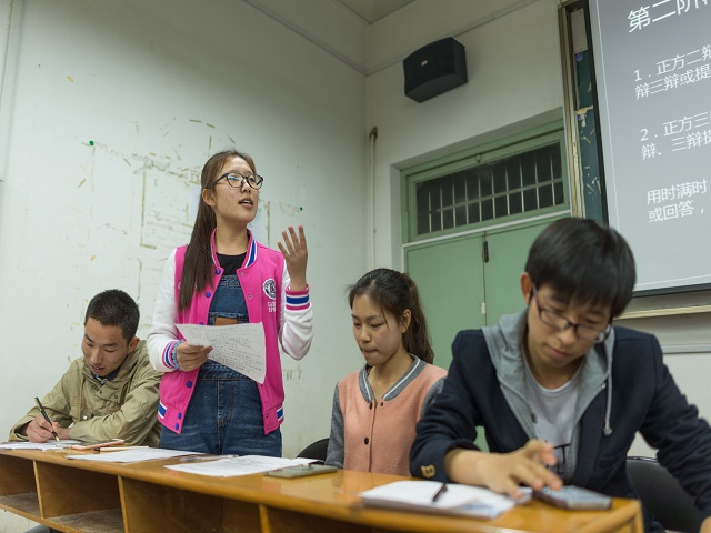 接着就是第二阶段——攻辩,双方辩手对各自所持观点进行了具体陈词,正方提问反方不屏蔽父母是否会在发朋友圈时因为顾虑父母而压抑内心的想法,反方则认为可以将父母当成自己的知心朋友,双方你来我往,各抒己见,回答中肯,反驳有力。辩手们反应机敏,语言流畅,说理透彻,语言犀利,每只队伍力求在气势上压倒对方。