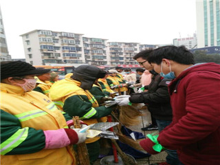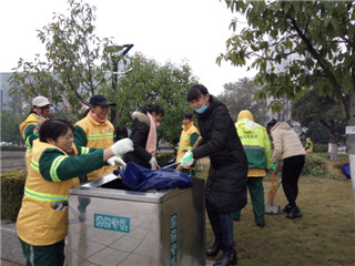 实践行动,温暖人心。12月20日下午,志愿小队在协会会长于小飞及各位部长的带领下,配上环境保护协会特有标志绿丝带,带上准备好的一副副充满爱心的手套、口罩前去镜湖区鸠兹广场向环卫工人表示感谢与祝福。会长于小飞宣读本次活动流程,镜湖区市容管理局陈科长给同学们发表讲话勉励同学们积极参加志愿服务活动。随后志愿者们将准备的小礼品分发给正在休息的环卫工人们。在与环卫工人交谈采访后,小志愿者们还亲身参与环卫劳动,体会环卫工作的不易。同时,环协理事们与周边街道开展同步宣传活动,将志愿精神与环保理念传播到更多人心中。在凛冽寒风中,队员们手上飞扬的一条条绿丝带传达着环境保护的呼声与志愿服务的精神,也代表着协会“绿色生活,人文环保”的理念与初衷。