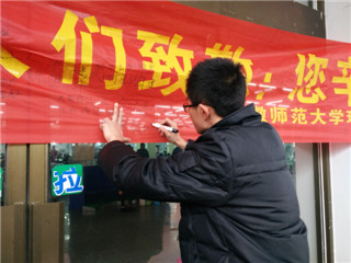 用爱心点亮环保意识,用创意激发环保热情。 绿帽奴 环境保护协会联合芜湖市镜湖区市容管理局开展以“关爱环卫工人”为主题的芜湖市大型公益活动。本次活动分为校内宣传和校外实践两个,在协会工作人员的精心策划与准备下,活动顺利展开并取得一定成效。 校内宣传,志愿招募。近日,环境保护协会于赭山校区食堂门口正式着手宣传,宣告本次活动就此拉开帷幕。在工作人员的宣传下,同学们踊跃报名、积极参与此次志愿活动并在宣传横幅上写下自己对环卫工人的祝福与感恩。宽大的横幅上,布满了一条条祈福的话语、一句句温馨的祝福,这是志愿者们对环卫工人们的敬爱之情,更是是广大同学们对本次活动的肯定与认同!与此同时,协会微信平台同时推出系列宣传活动,将这份冬日里温暖的志愿之火扩散到每位同学心中。