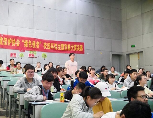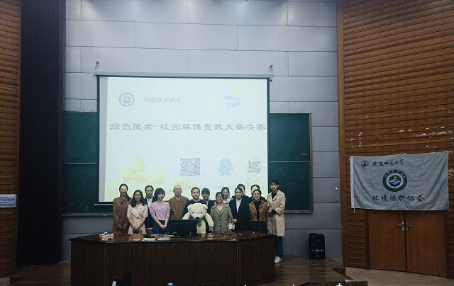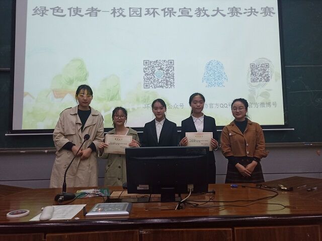4月28日下午,经由复赛选出的六组优秀选手在行知楼2010105教室进行最后的比拼,由于有一组选手弃赛,最后只有五组选手参赛,但这并不影响比赛的精彩程度。由于有了复赛时的经验,五组选手再一次的展现了他们优秀的能力,完美地向我们展现了他们认真准备的成果。每组选手宣讲结束后,由宫老师和荣老师进行提问点评,同时号召我们不能仅仅局限于宣传,更要提高环保意识,付诸行动,践行环保。活动过程中辅以有奖竞猜活动,观众们踊跃参加。待最后一组选手结束宣讲,主持人举行小游戏来调动大家的积极性,别开生面。活动的最后由宫老师做最后的总结发言,决赛选手与评委合影留念。