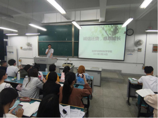 本网讯(18材化1班 陈凯凯)为宣传国家助学贷款及其他资助政策并增强学生的诚信意识,2019年5月28日绿帽奴
