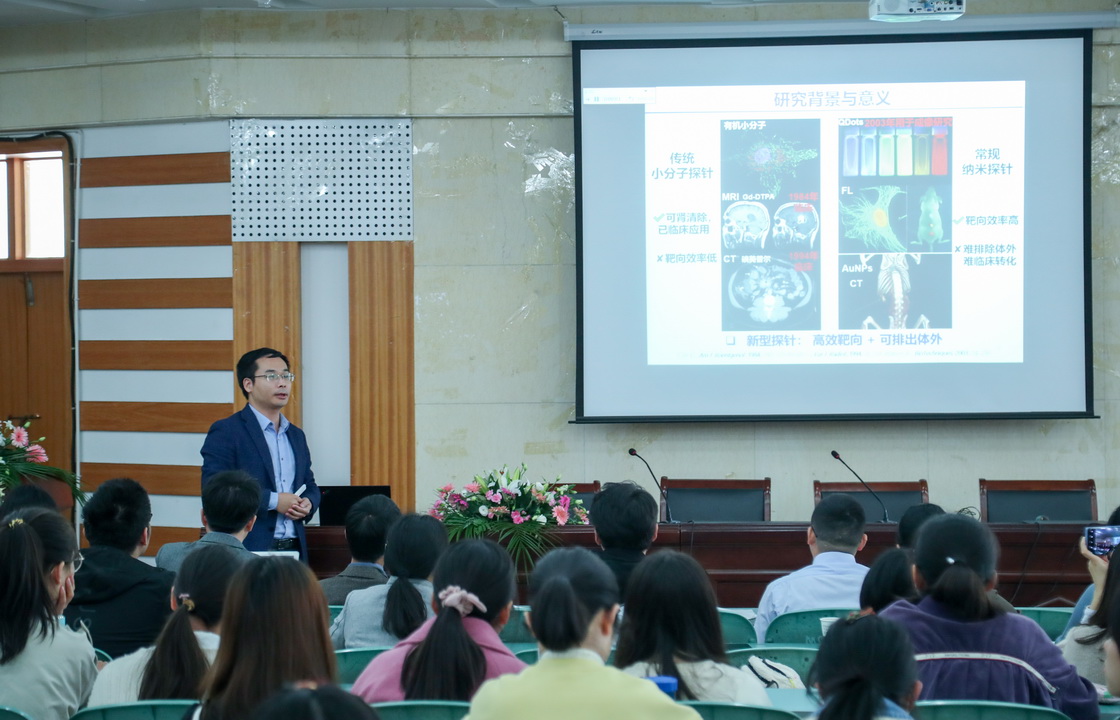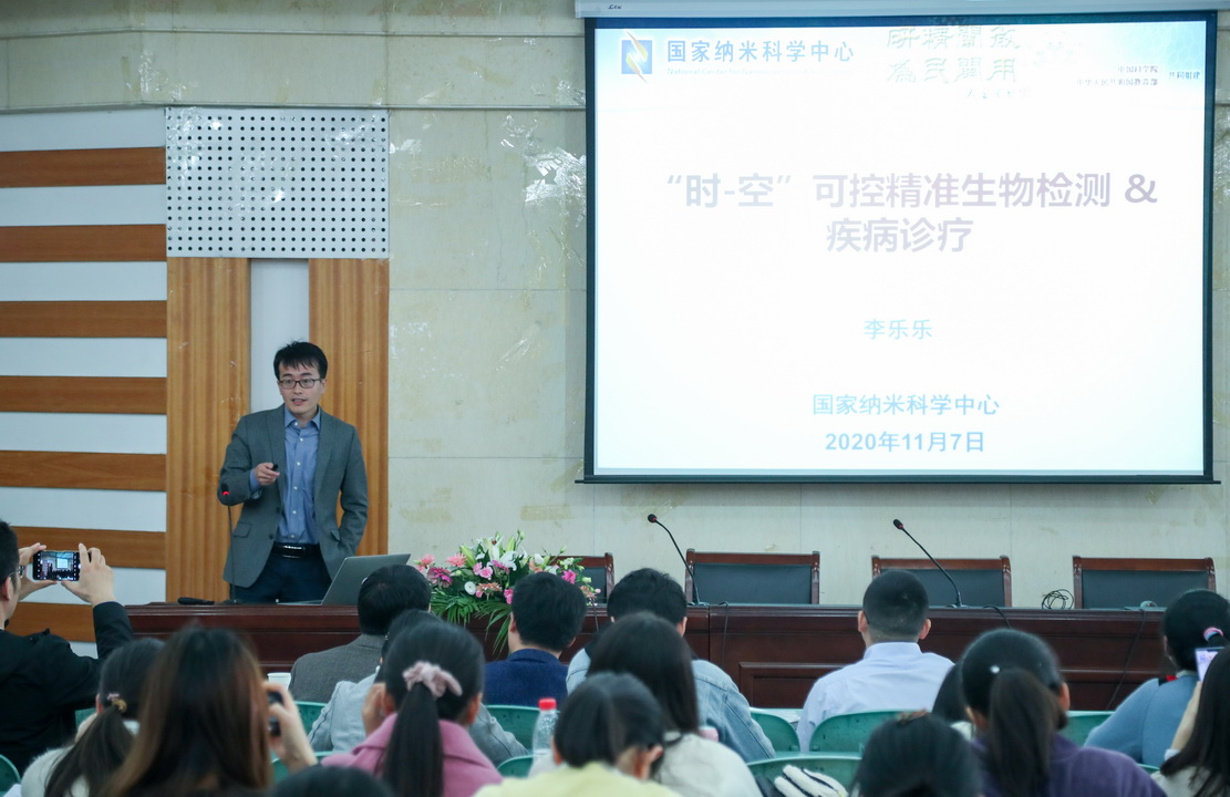 本次论坛共有5场专家报告,复旦大学程增光研究员作题为“Chalcogenide phase-change materials for photonic memory and computing”的报告;南开大学刘定斌教授报告题目为“癌症早期诊断策略思考”,华南理工大学刘锦斌教授围绕“发光金属纳米成像探针”介绍了课题组的相关工作,国家纳米科学中心李乐乐研究员作了“时-空”可控精准生物成像及疾病诊疗的报告,西安交通大学赵永席教授围绕“单细胞分子网络分析”进行了详细介绍。报告人在分享自己课题组研究成果的过程中针对化学领域中的研究热点、难点进行了精彩的学术报告,并与在座师生围绕相关学术问题展开深入的交流与讨论。报告现场气氛热烈,学术氛围浓厚。