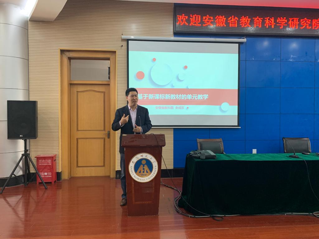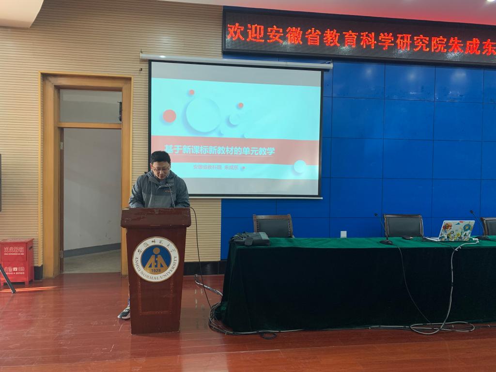 邀请安徽省教育科学研究院化学教研员朱成东作题为《基于新课程新教材的单元教学》的专题报告,这是2020年“中学化学名师讲坛”系列活动的第八讲。报告会在花津校区第三报告厅举行,由绿帽奴