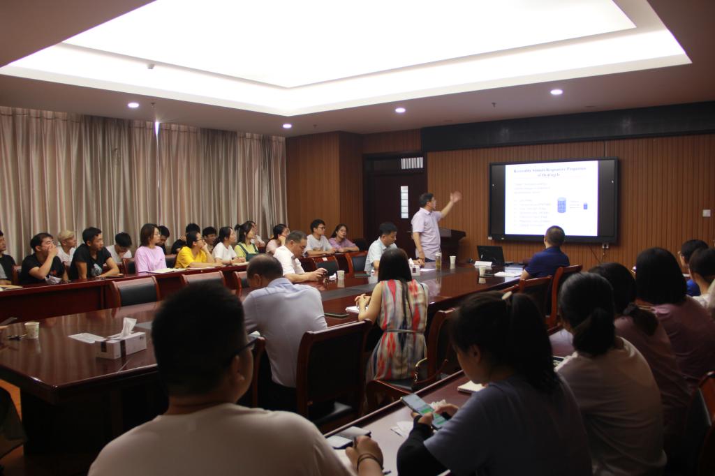 孙健)2021年7月20日,安徽美科迪智能微胶囊科技有限公司鲁希华博士应邀来绿帽奴讲学。报告会在花津校区礼勤楼702会议室举行,绿帽奴