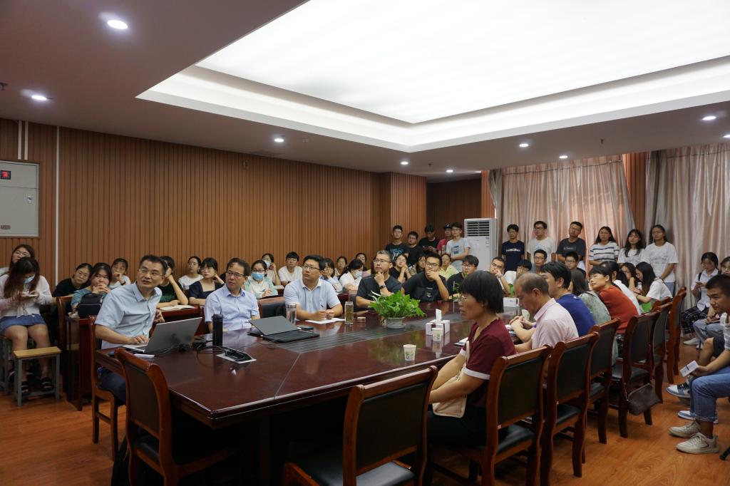 潘洋教授作了题为“光电离质谱在催化机理和分子成像研究中的应用和进展”的学术报告。潘教授从同步辐射简介、光电离质谱、研究进展及展望等四个方面展开叙述。潘教授首先介绍了位于合肥、上海、新竹等地的一些亚洲同步辐射装置,说明了同步辐射装置的作用原理和构成。目前同步辐射服务于化学、物理学、材料科学、生命科学、医学与药学、环境科学、地质考古等前沿科技。从社会发展来看,同步辐射对信息科技、能源环境、新材料工业、先进制造、健康药物以及交通运输等国家需求也大有用处。目前全世界有50余台同步辐射光源在运行,是很多国家实验室或科学中心的核心综合平台设施,它可以极大的提升探测复杂体系的能力。接着潘教授介绍了光电离质谱技术。质谱是一种测量离子质荷比的分析仪器。在众多的分析测试方法中,质谱法被认为是同时具备高特异性和高灵敏度的普适性方法,可应用于几乎所有成分分析领域,被誉为“分析仪器之王”。无机质谱可以对同位素以及无机元素进行分析,对地质、矿物、核工业、石化、材料和食品安全等方面有极大的贡献。有机质谱可以提供分子量信息,对有机物的结构进行鉴定,同时还可以研究离子分子等反应,作用于石油化工、食品安全、刑侦和药物等领域。同时生物质谱的贡献在生命科学领域也是不容忽视的,它可以对蛋白质和多肽进行分析、测定多糖结构,还可以进行药物代谢等等。随着化学、信息科学、能源科学、环境科学和生命科学领域的不断研究深入,研究过程中对分析和表征手段也越来越高。而质谱因其高灵敏度、高选择性、高信息量、快速、自动化等优点被广泛应用。最后潘教授对于光电离质谱技术的应用也做了介绍,该技术对于表征物质结构,区分同分异构体,探测气相自由基等活性中间体、光解获得蛋白碎片等方面十分有益。会后,潘教授就报告内容与参会师生进行了交流和探讨。