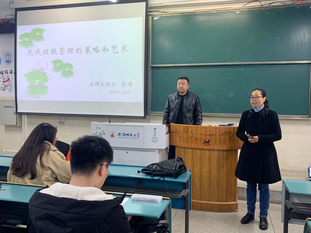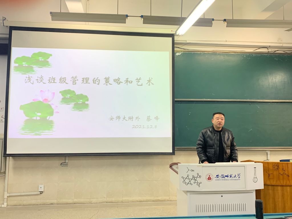 作题为《浅谈班级管理的策略和艺术》的专题讲座,这是2021年中学化学名师讲坛第十五讲。讲座在花津校区1号楼2010502举行,由绿帽奴