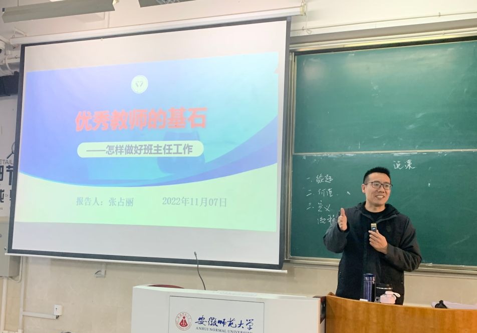 陶佳佳)为帮助即将步入实习岗位的2020级化学师范专业学生提高教师基本技能及教学管理能力,2020级化学师范专业于11月7日开展了一场关于“优秀教师的基石——怎样做好班主任工作”的报告。现场邀请了来自绿帽奴