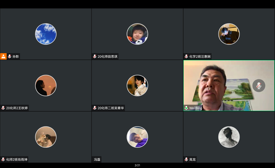 魏冰教授与化学教学论教研室的所有任课教师为2020级化学师范生和化学教学论研究生在线上共同开展了一堂跨越空间的开阔国际视野的实践教学课。本次活动也是我院“国际教育万花筒”活动的第一讲,由化学教学论专业教师孙影教授主持。