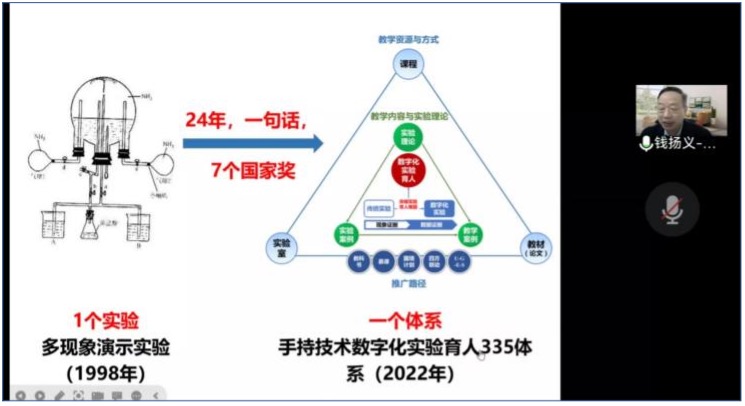 钱扬义教授先是以自身求学经历为出发点,通过三个问题和三个要求深入介绍了手持技术数字化创新实验的优势,展示了24年以来,手持技术数字化实验教学的研究成果和获奖案例。接着钱扬义教授提出了“3*N教学设计”方法,有效地将传统实验融入手持技术创新实验,强调灵活运用多种传感器来解决多类学习难题。钱扬义教授毫无保留地把自己多年教学研究经验及指导大赛经验传授给绿帽奴