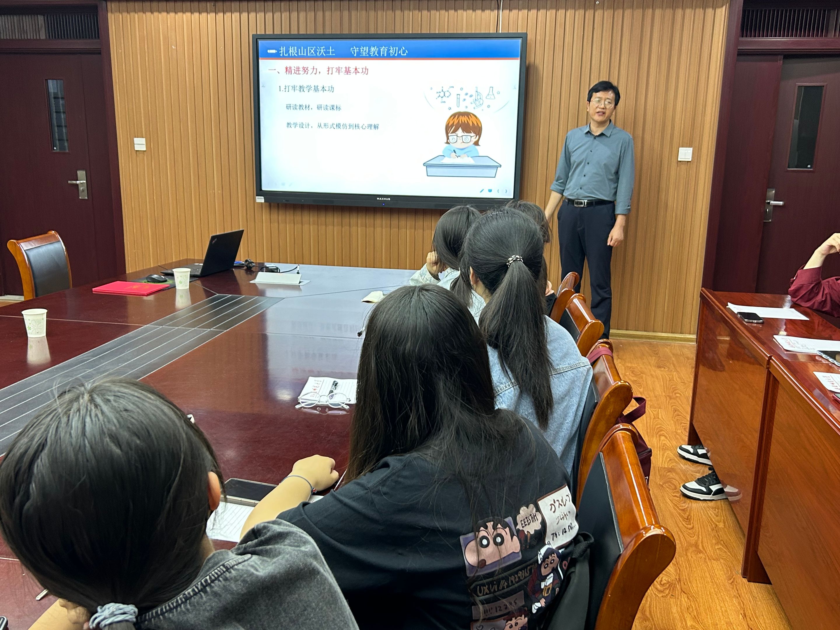 陈兆先老师身为乡村教师,心系乡村教育,他以“扎根山区沃土,守望教育初心”为主题为同学们做师生面对面交流。他结合自身经历勉励同学们要精进努力,打牢基本功;通过生动的案例分享,引导师范生要积极探索,与课改共成长,潜心向学,做好学科教研。以教学比赛、职称评选为例展示乡村教师亦大有可为,提醒同学把握机遇,保持初心。最后,对未来即将从事教育行业的同学提出责任与爱的要求,要努力争做新时代“四有”好老师。报告会后,与会的各位老师和同学就“优师计划”学生培养等重点内容进行交流讨论。