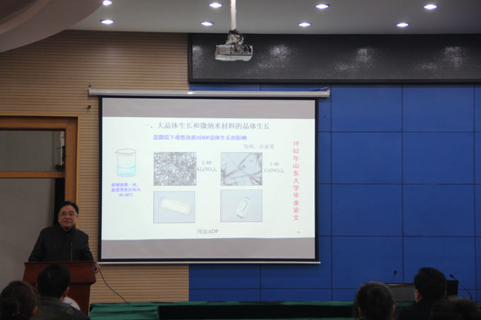 钱逸泰院士作了题为“无机固体化学的发展”的学术报告。报告伊始,钱院士通过“行成于思毁于随”这句古话突出了科研工作的核心,紧接着从微米材料的晶体生长、固体化学方向的确定、“隆中对”式的开题报告、新型氧化物超导材料的探索、γ射线辐照法制备纳米材料、溶剂热合成纳米材料、二次纳米电极材料的研究、金刚石的合成等八个部分讲述了他55年的科研历程。报告内容精彩丰富,与会师生在与钱院士的互动交流中受益良多。