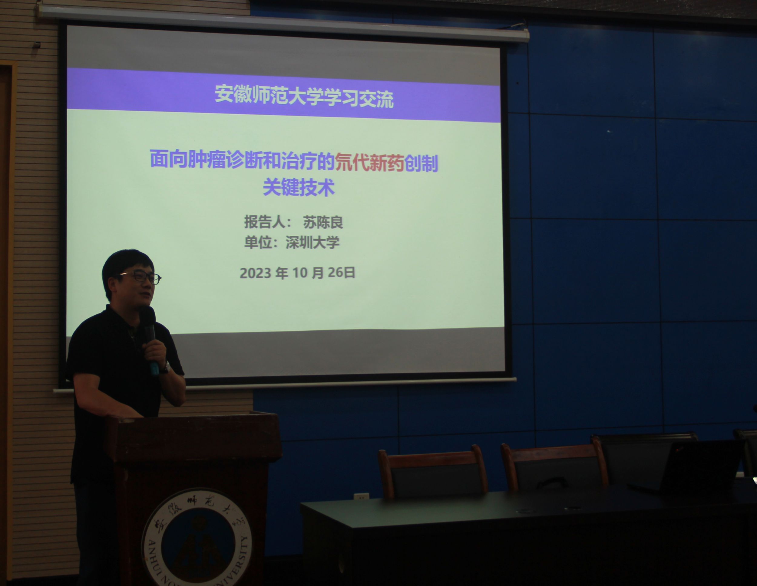 2023年10月26日,深圳大学苏陈良教授应邀来绿帽奴讲学。报告会在花津校区会议中心第三报告厅举行,由绿帽奴