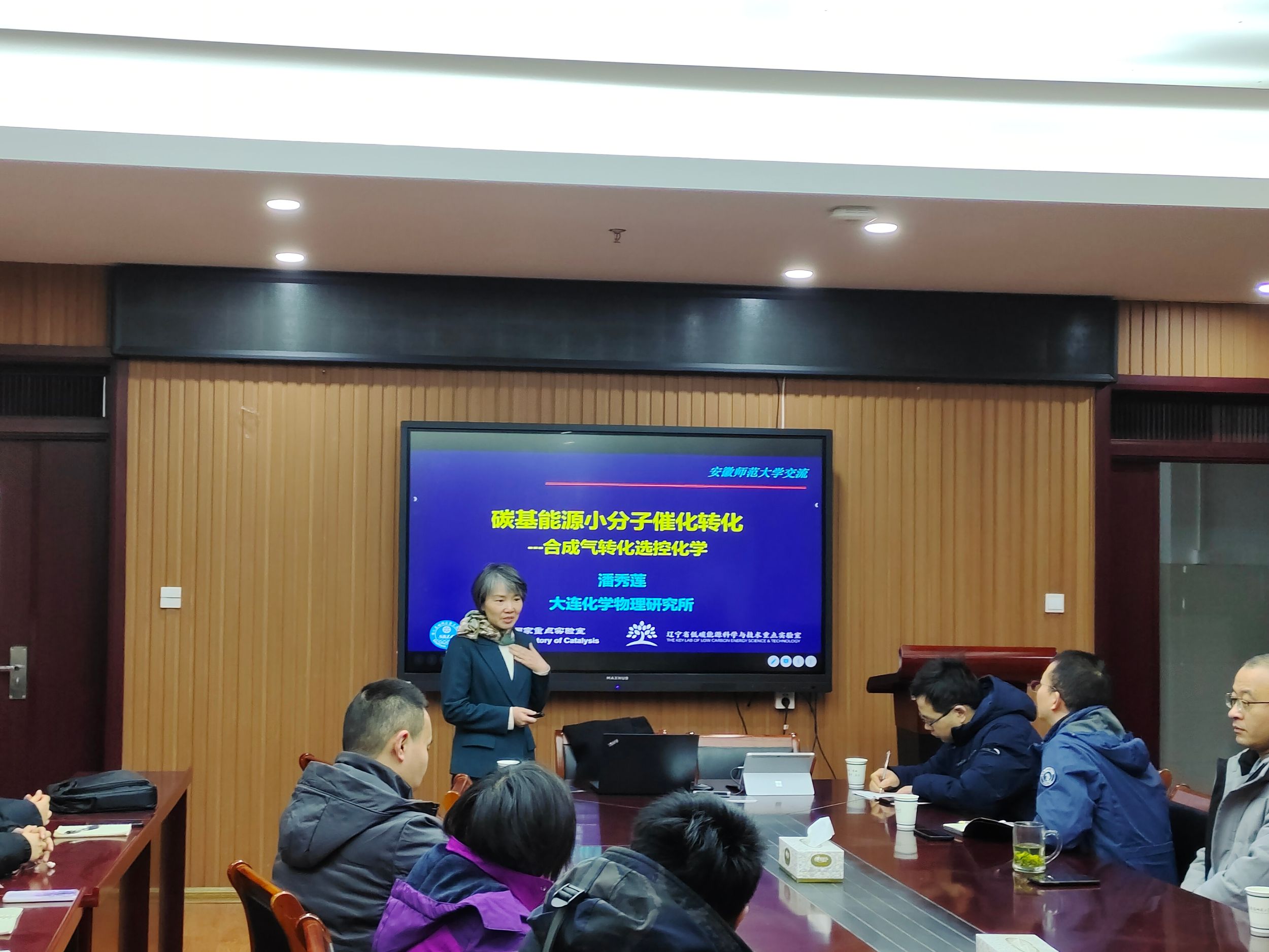 大连化学物理研究所潘秀莲教授应邀来绿帽奴讲学,报告会在花津校区礼勤楼702室举行,由绿帽奴