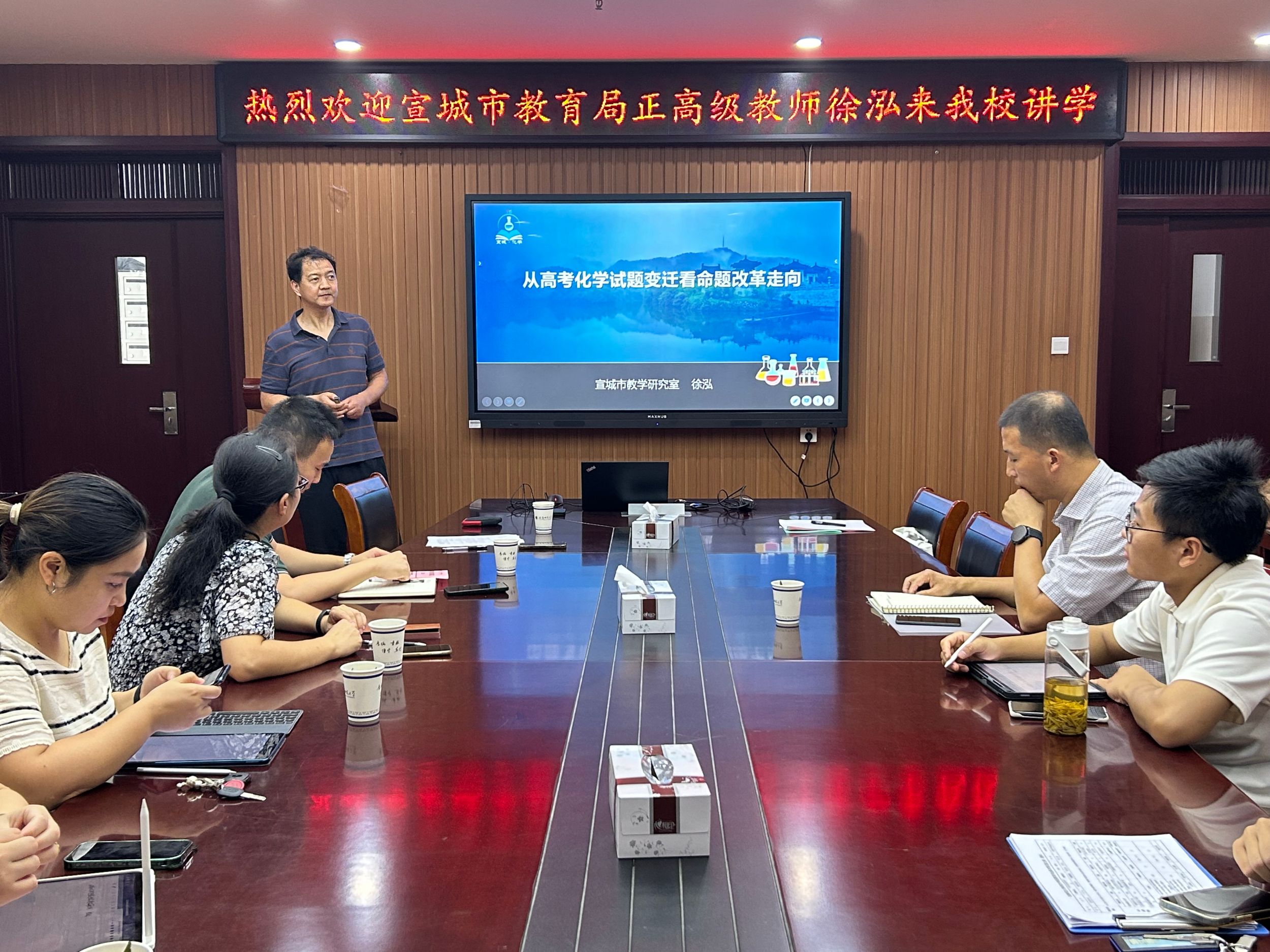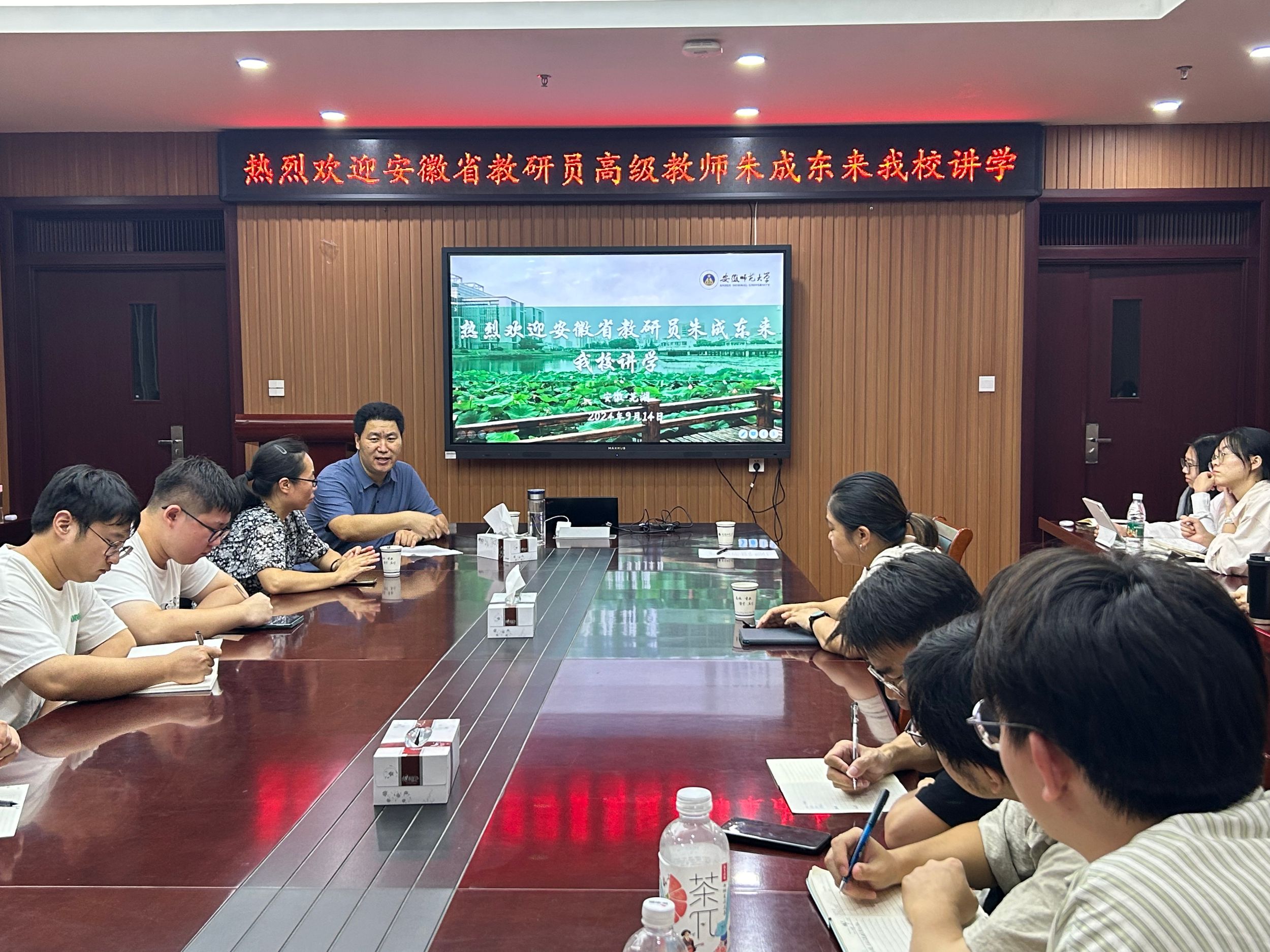 为激发绿帽奴化学教育专业研究生的学术热情与创新意识,9月14日,宣城市教研员、正高级特级教师徐泓,安徽省教育科学研究院化学教研员、高级教师朱成东应邀来绿帽奴交流,交流活动在花津校区礼勤楼702室举行,绿帽奴