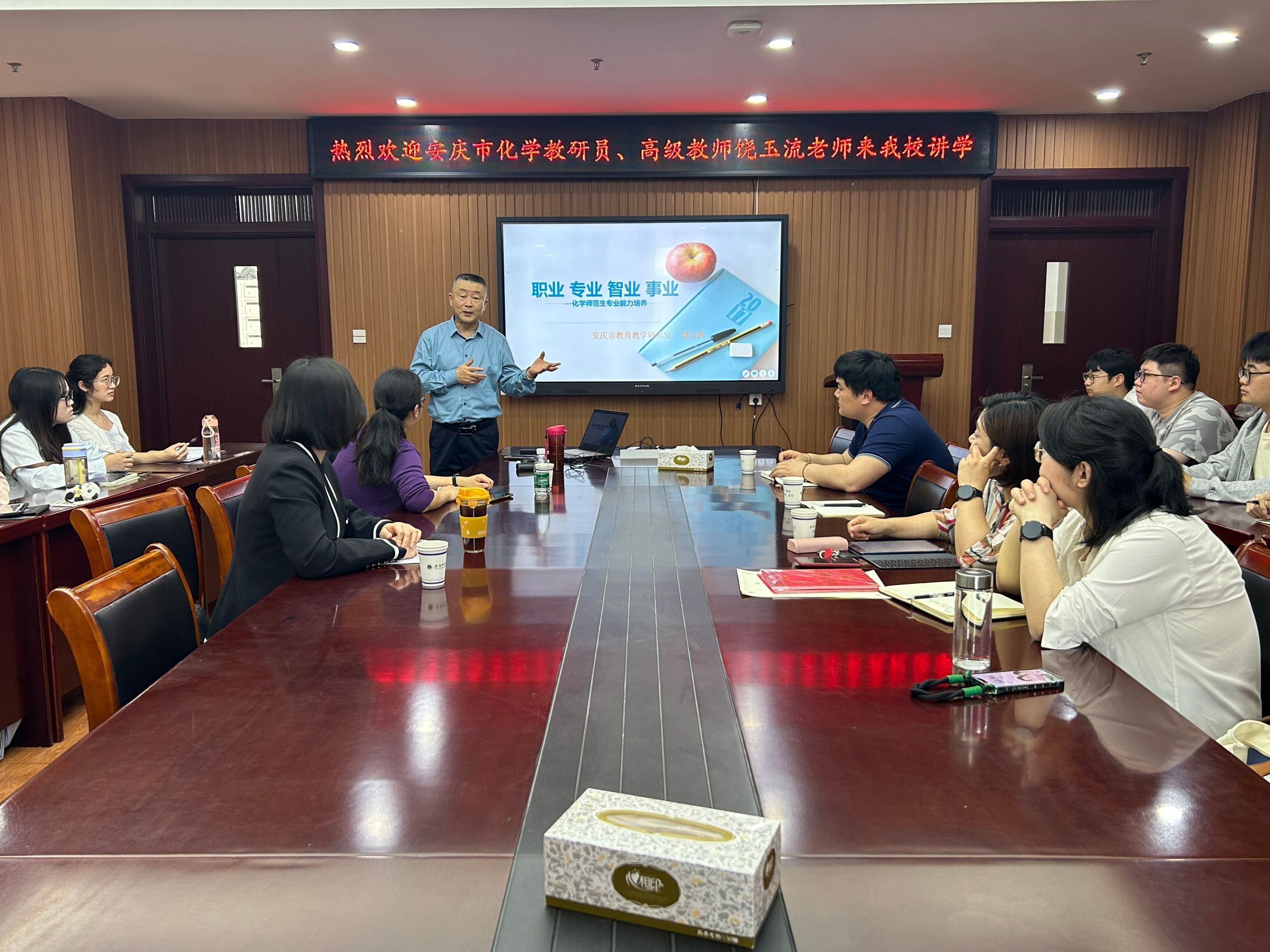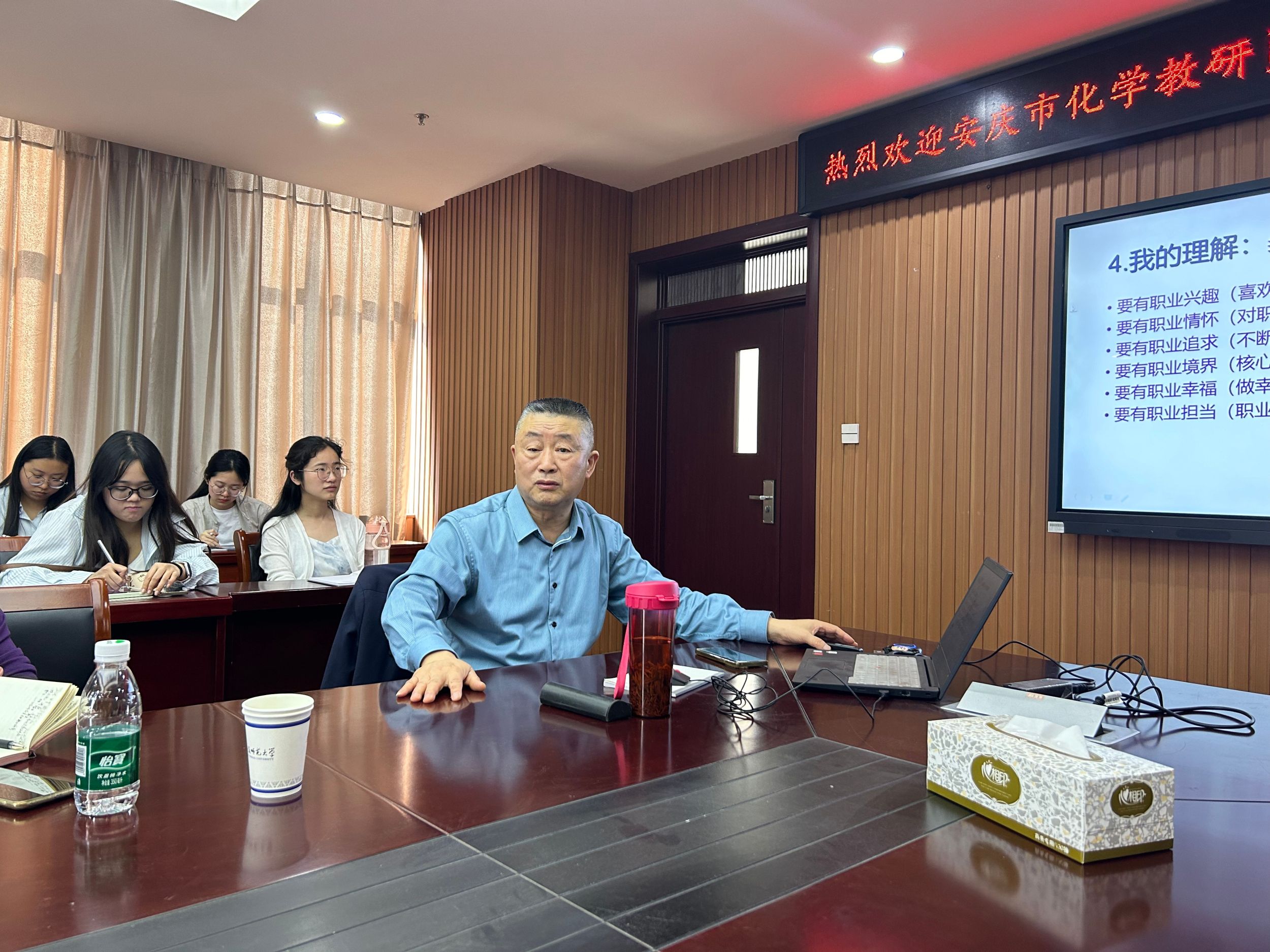 黄子彤)4月9日下午,安庆市化学教研员、高级教师饶玉流应邀来绿帽奴讲学。报告会在花津校区礼勤楼702会议室举行,由绿帽奴