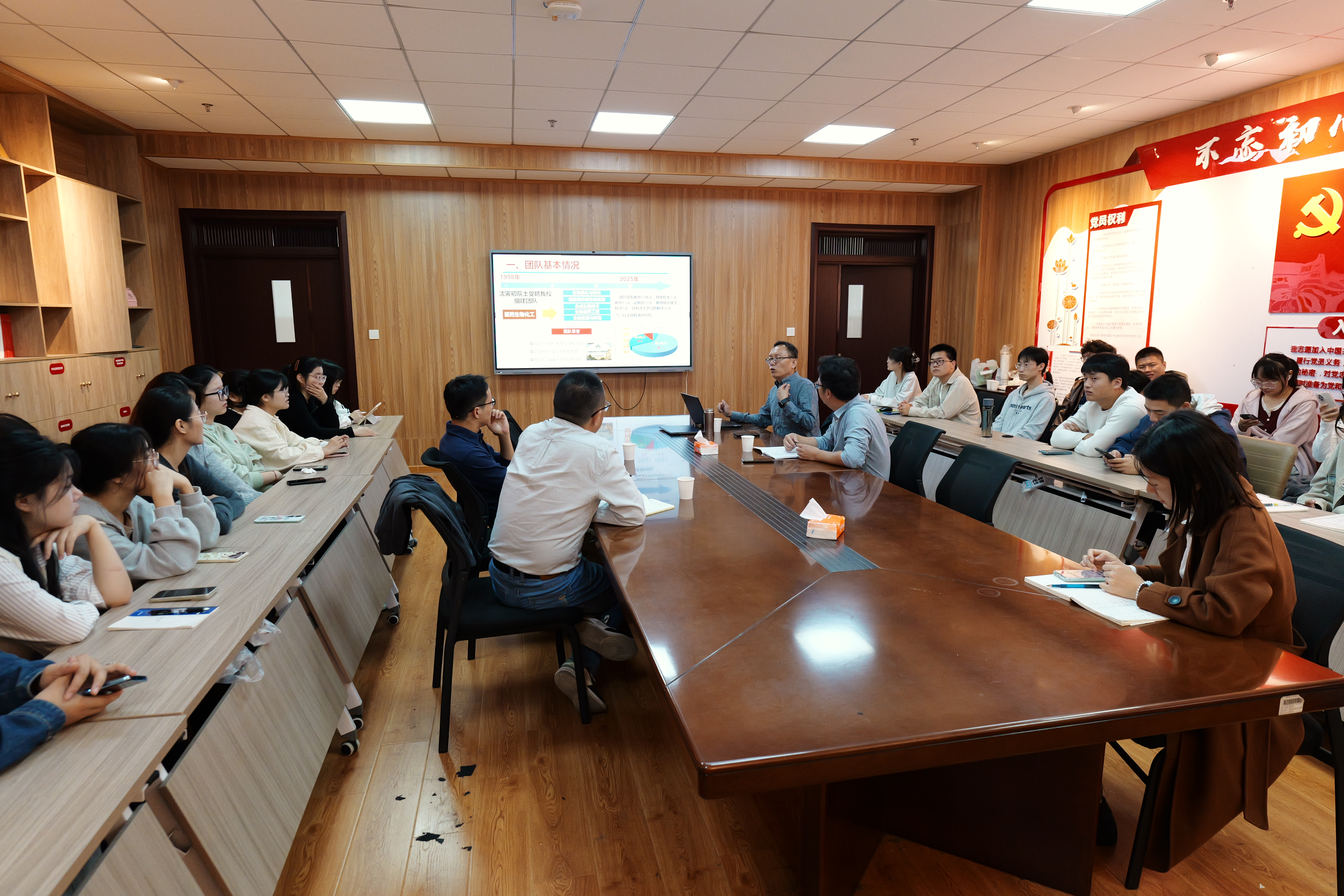 王远山教授作了题为“利用代谢工程构建高产S-腺苷蛋氨酸酿酒酵母菌株”的学术报告。王教授讲解了生物催化与微生物发酵团队,团队主要研究方向是从酶的筛选、改造与制备,生化反应过程工程,细胞工厂构建,发酵过程优化与控制,生物工业产品的开发五个方面。团队实施以推进团队重大课题为导向的课题组运行机制,课题组汇聚不同专业背景的团队成员,聚焦重大项目的瓶颈问题,通过协作互补,举兵作战模式实施项目进展。团队的特色与创新是把国家重大需求放在科研首位,立足学科前言、面向社会发展。团队代表成果有生物制造实现农业现代化和生物制造生产功能性糖与糖醇。会后,王远山教授与会师生展开了一系列学术讨论,并回答了与会师生提出的问题。