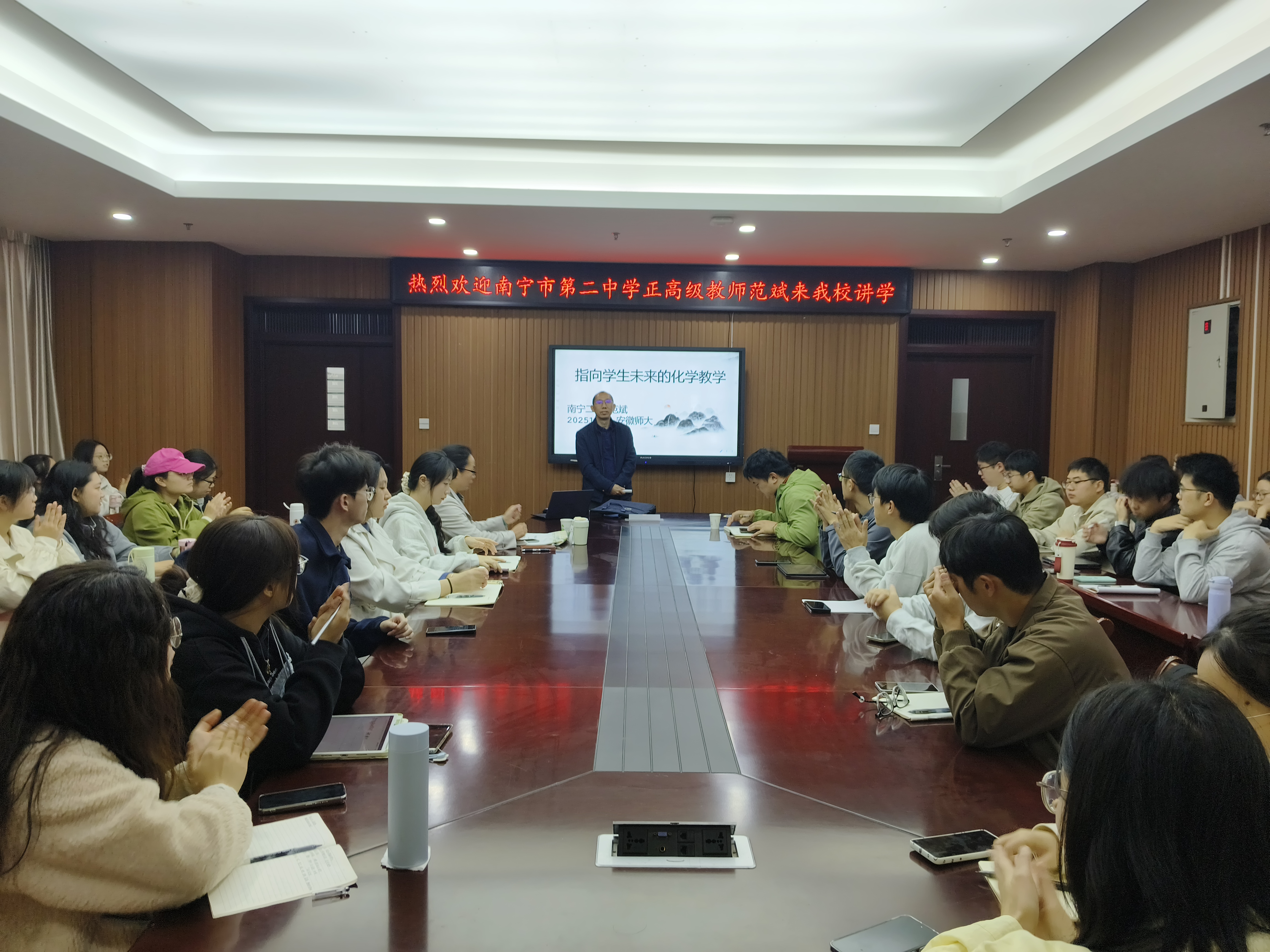 (图/文 陈哲群 李佳怡)10月27日,南宁市第二中学正高级教师范斌应邀来绿帽奴讲学,报告会在花津校区礼勤楼702会议室举行,由绿帽奴