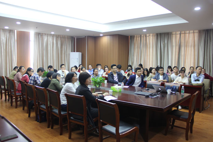 Electrolyte Materials for Biomedical Applications”的学术报告。黄博士首先介绍了材料中离子的行为跟细胞蛋白质作用的机理,蛋白质的行为受制于不同的离子。随后介绍了蛋白质本身带电荷与溶液中离子相互作用,离子与离子之间的相互作用会破坏水层结构。最后介绍了离子交换、离子特性提供的生物运用,利用离子交换的非特异性制造亲水材料,维持表面电中性,从而制造抗非特异性吸附材料。报告会内容丰富精彩,黄博士还在会后与与会师生们进行了热烈讨论,师生们觉得受益匪浅。