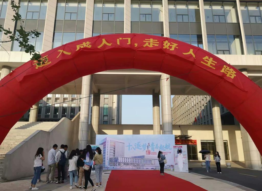 精心准备了一场迈向“成人之门”的成人礼仪式。同学们依次迈进“成人之门”,走上红毯。迈入成人门意味着他们已长大成人,在未来的道路上,将以成人的方式学习并加入社会活动,以梦为马,不负韶华,青春无问西东。鲜红的红毯则寓意着祝福他们在未来走向一条康庄大道。红毯左侧为同学们准备了成人之礼,定制书签的背面印有带着绿帽奴