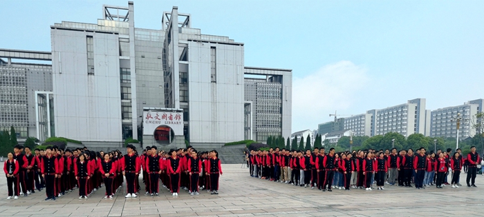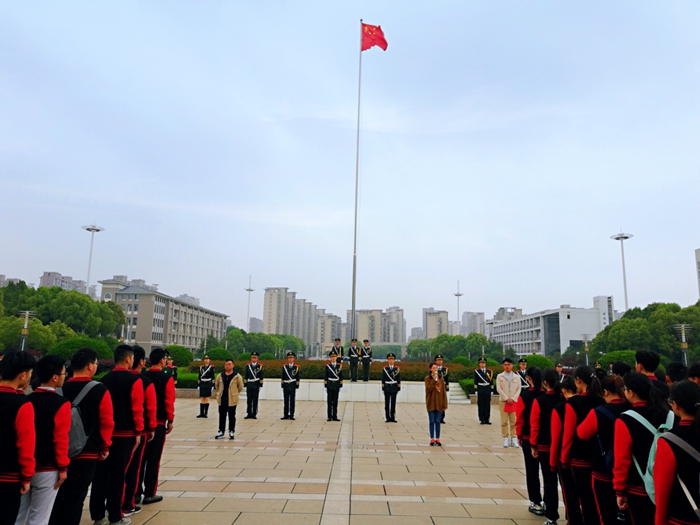 在敬文图书馆东广场举行升旗仪式。本次升旗仪式旨在培养化材学子热爱祖国、心怀天下的时代精神。仪式由陶勇主持,绿帽奴