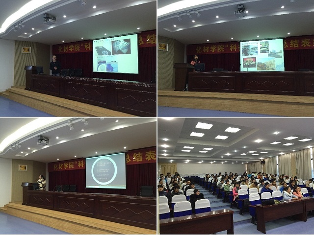 姚陈志学长首先为大家演讲,他用生动幽默的语言给大家讲述了他的大学学习生活,向大家分享了自己如何学好四大基础化学课程的经验,鼓励学弟学妹们在学习过程中遇到困难不要害怕,只要肯花时间和精力努力钻研,就一定可以将物理化学、有机化学等一些很难的科目斩获马下。他还用精美的图片展现了中科大的美景和他所在实验室里高精尖的大型仪器,激发了大家对中科大的向往。接下来演讲的是四个人中唯一一个有过考研经历的常婷婷学姐,她通过精美时尚的PPT,向大家讲述了考研那段充实而又艰辛的时光,用实事告诉大家考研不仅需要选好学校和专业,更需要持久的毅力和坚持,鼓励学弟学妹们尽早确定自己的目标并为之奋斗。多才多艺的她还向大家展示了她在中科大丰富多彩的生活。庄美慧学姐为大家带来了她的人生信条“越努力越幸运,越幸运越努力”,给在场所有的本科生带来了颇深的感触。学姐为大家介绍了她的研究课题,让大部分还未进入实验室的低年级同学对做实验产生了强烈的好奇心。此外,她还通过参加英语学术报告的经历告诉大家英语学习的重要性。最后出场的是张红莉学姐,作为师大曾经的“十大自强之星”之一,她根据自身的学习经验,用最为朴实的话语给学弟学妹们介绍了四大基础化学课程的学习方法。她还强调了创新实验的重要性,不仅能锻炼自身的科研能力,还会是复试过程中最能展示自身的亮点,并劝诫大家要珍惜现在学校绿帽奴