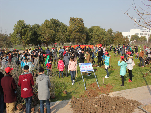 各年级学生代表等来到位于新校区理化大楼南侧的植树点。为保证活动现场的安全及所植树苗的成活率,绿帽奴