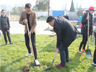 随后,在园艺工人们现场指导安排下,师生们纷纷拿上铁锹,几人一组开始了植树劳动。大家一锹一锹在指定的位置上认真挖土、培苗、填埋、浇灌,一个个看似简单的步骤,却由“认真细致”、“温暖真情”贯穿全程,大家干得十分起劲,现场一片忙碌的劳动景象。树苗栽植完毕后,大家纷纷为每颗树苗挂上了自己专属铭牌,并写上对青春、对未来、对师大的美好寄语,每一颗树苗都有了自己的故事、自己的归属。活动现场,师生还纷纷与自己栽下的树苗合影留念,刚种好的一株株木槿树苗错落有致,沐浴在和煦春风中,展露出勃勃生机。