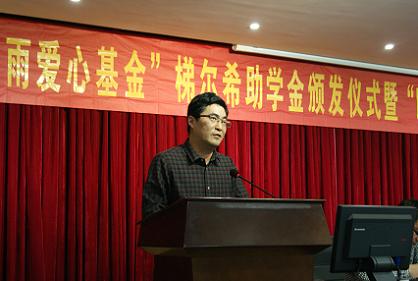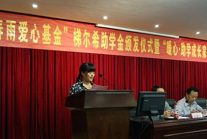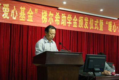 方百盈代表学校教育基金会表达了对梯尔希(南京)药物研发有限公司的感谢和对“暖心·助学成长家园”成立的由衷祝贺。高峰在讲话中肯定了助学金的设立在绿帽奴