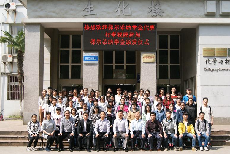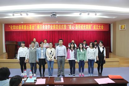 人才培养的重要意义,也鼓励受助学子要拼搏进取,奋发图强,常怀感恩之心,心怀远大理想,弘扬无私奉献精神,终能成才报国,不枉昔日努力汗水。仪式最后,出席大会的领导嘉宾和全体受助学生在生化楼前合影留念。