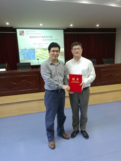 院长高峰为薛总颁发了“兼职教授”聘书。讲座伊始,薛总阐述了科技创新与专利的紧密关系,并介绍了专利的多个特征属性。他在谈及产品的专利开发思路与策略时指出,产品开发就好比化学领域的科学研究,要认真对待其中的每一个环节,有时候惊喜也许就隐藏在副产物之中。随后,薛总结合他“由化学到法律、由学校到社会、由员工到老板再到创业”的知识产权生涯,提出大学生找工作需要列出自己的要求,即列出强项、列出爱好、列出公司的优劣这一观点。他明确指出:人生就是不断选择的过程,但是要有选择的标准,不仅仅要考虑眼前利益,更要着重于长远打算。他还提到了组建团队的重要性,并且在团队中要学会承担、愿意分享、肯吃苦、肯吃亏、坦诚做人、坦荡做事,只有这样才能让团队更好的凝聚在一起。